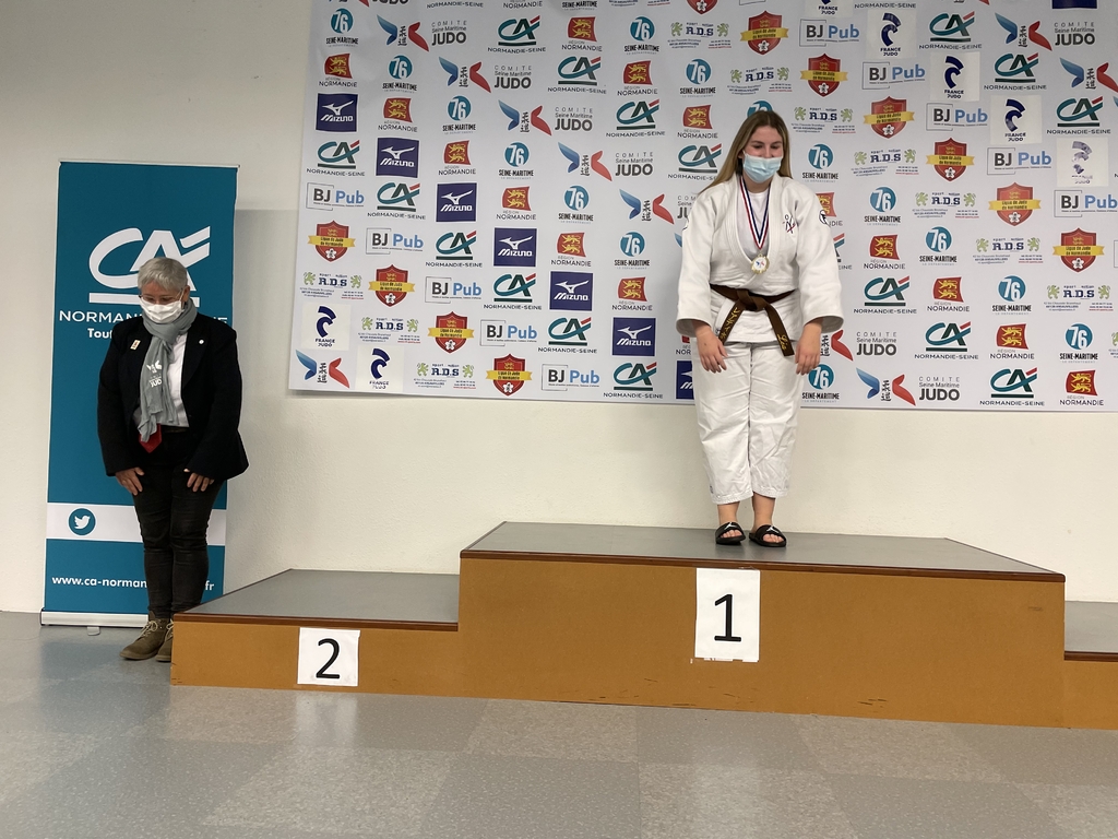 Chez les féminines, Léa Dijon faisait le déplacement contrairement à ses adversaires. Déçue de ne pas combattre, elle avait au moins fait l'effort de venir et montait donc sur la 1ère marche du podium synonyme de championnat régional.
