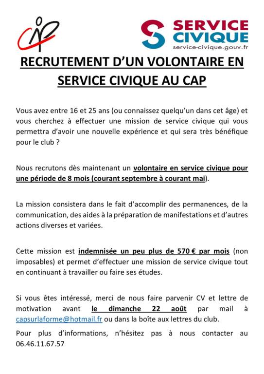 Si vous êtes intéressé, merci de nous faire parvenir CV et lettre de motivation avant le dimanche 22 août par mail à capsurlaforme@hotmail.fr ou dans la boîte aux lettres du club.