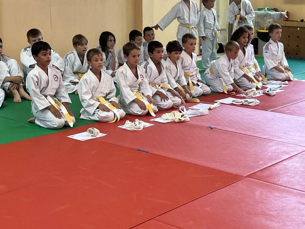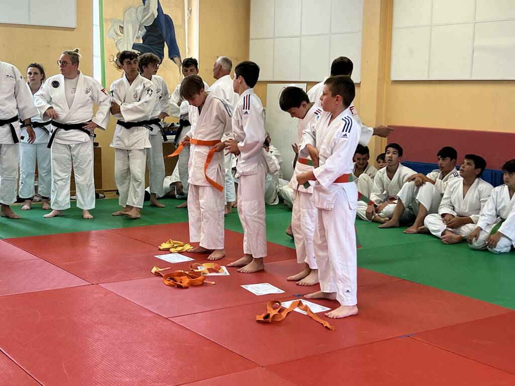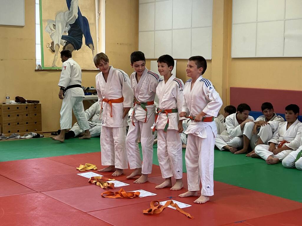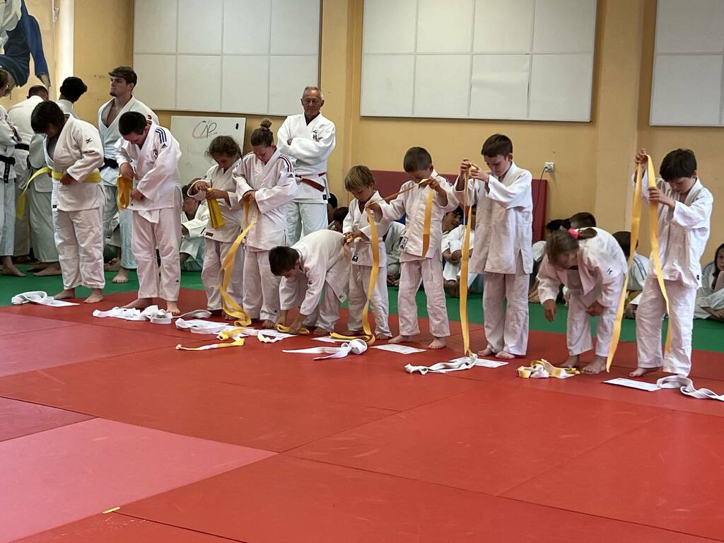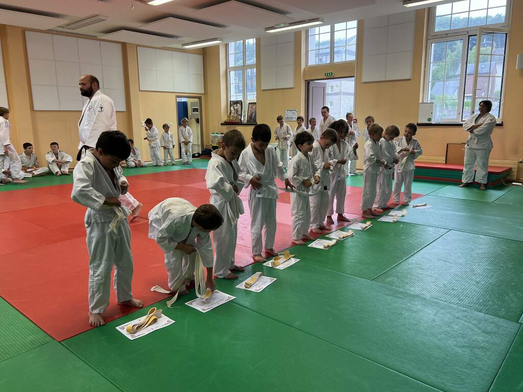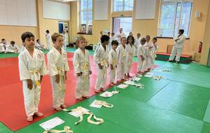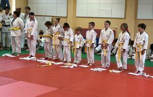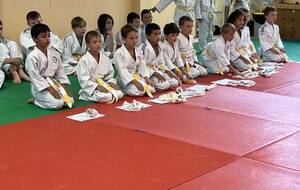 C'est ainsi que les ceintures de la Blanche-Jaune à la Marron furent remises à chacun, avec l'avancement dans les premières séries du Kodomo-no-kata.