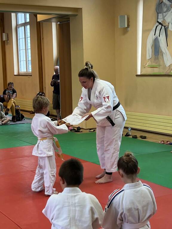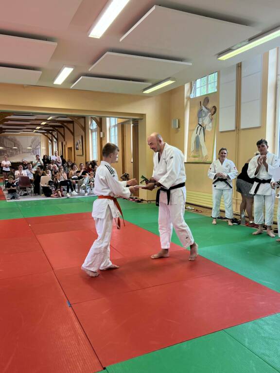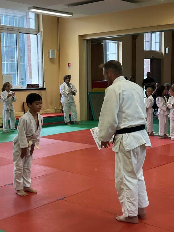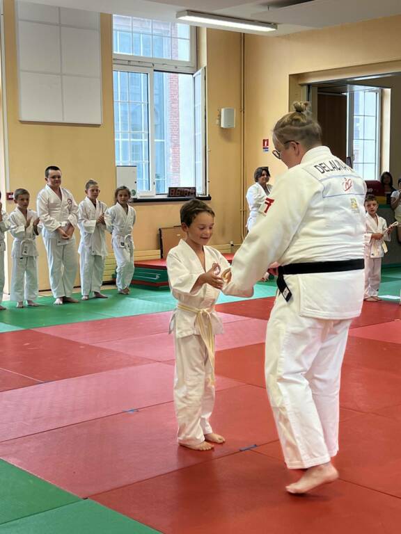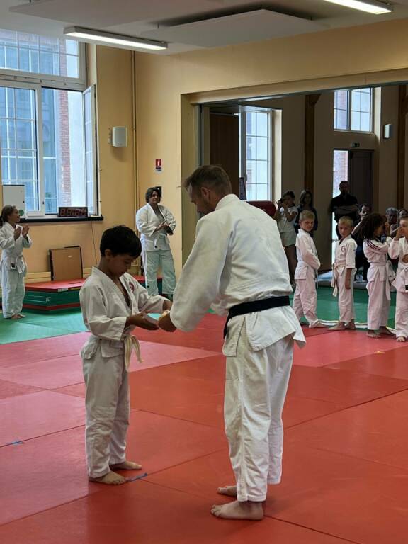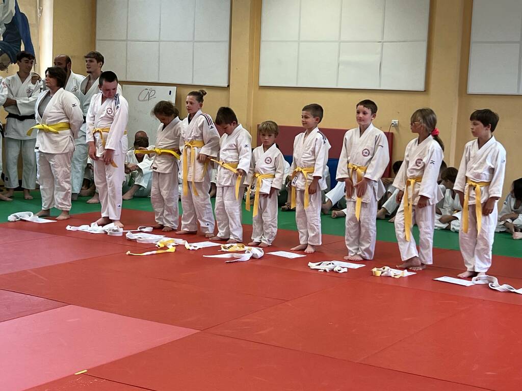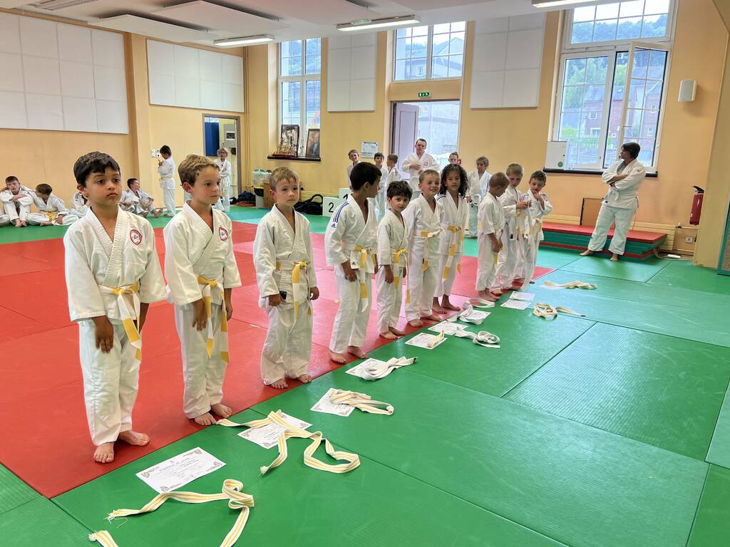 C'est ainsi que les ceintures de la Blanche-Jaune à la Marron furent remises à chacun, avec l'avancement dans les premières séries du Kodomo-no-kata.