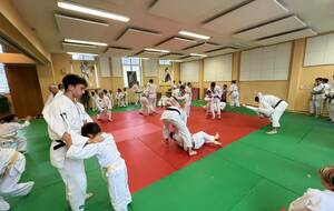 Ce fut ensuite le moment (très attendu par les plus jeunes) des randori intergénérationnels au cours desquels les Ceintures Noires invitent le "kyu" ...!