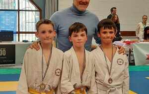 Yann Bazin, Théo Le Roux et Antonin Pinchon Restiau concluaient la journée. Pour Yann qui a commencé le judo au mois de septembre c'était également une première. Il manque donc d'expérience ... mais c'est en participant qu'on peut l'acquérir ! Bravo donc pour avoir eu ce courage de participer et de remporter cette médaille de bronze.