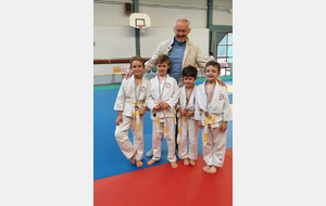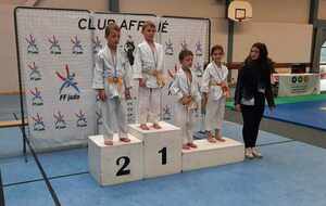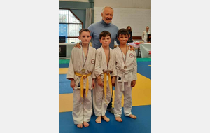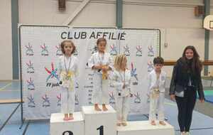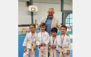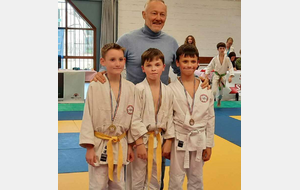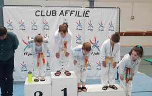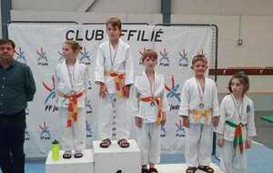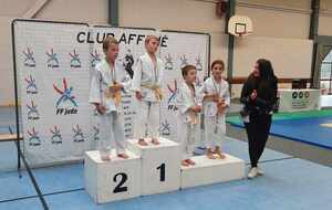 Eliott montera sur la plus haute marche du podium, Marceau et Blandine sur la troisième marche. Noa terminera 4ème bien qu'ayant gagné un combat lui aussi, de plus par Ippon... mais engagé dans une poule de 5 combattants !