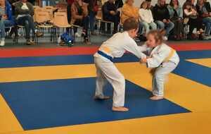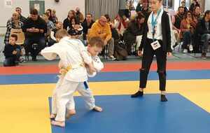 Sacha Tschamerholl inaugurait la matinée, seul capiste engagé chez les enfants nés en 2017. C'était pour Sacha son tout premier tournoi et donc une découverte de l'environnement d'une compétition ... un arbitre, des commissaires sportifs, une très grande salle avec du public ... c'est forcément toujours un peu impressionnant, mais Sacha saura s'en accomoder et en gagnant un combat, prendra une 3ème place dans cette poule de 4 combattants.