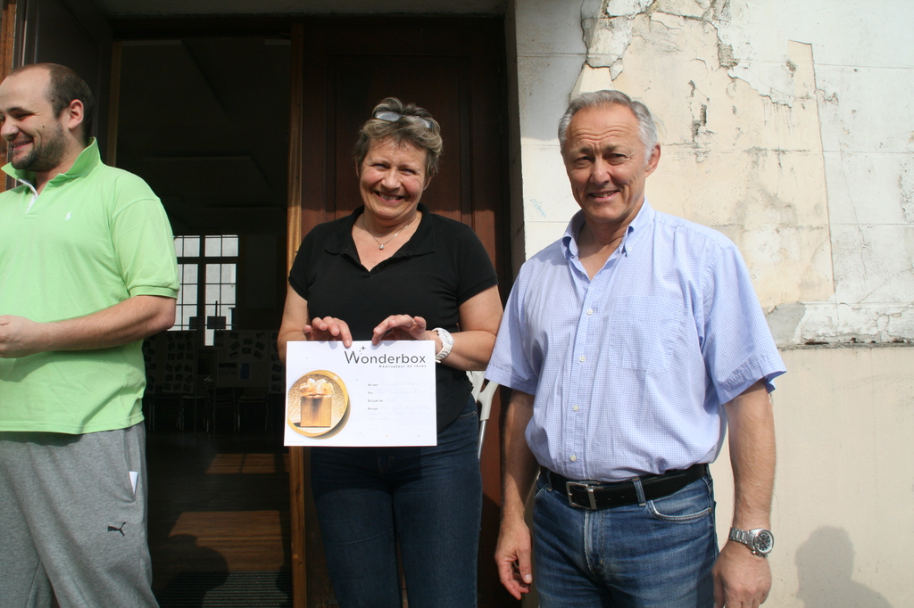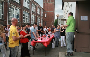 Ensuite, un pot de l'amitié était offert sur le parking, devant la Dame Blanche à tous les adhérents du club ainsi qu'aux anciens adhérents et personnalités venues nous rejoindre pour l'occasion. Ce fût un moment très convivial qui a permis à tout le monde de pouvoir se retrouver. C'était l'occasion pour le CAP d'offrir en cadeau un week-end à Virginie et Jean-Pierre Defrance pour les remercier de leur implication dans le club depuis tant d'années.