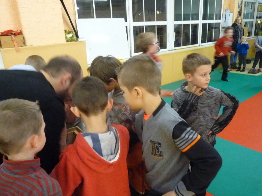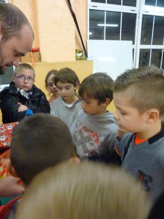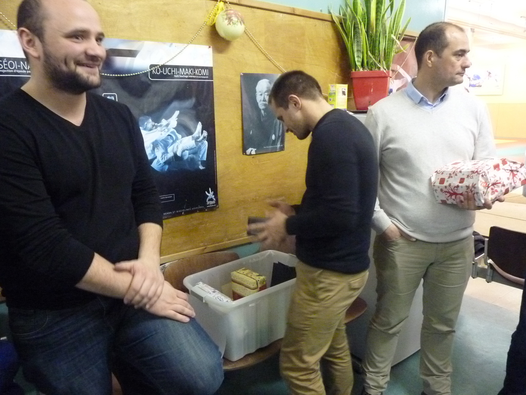 A la suite du spectacle vint le temps des échanges de cadeaux où chaque enfant et adulte participant ayant ramené un cadeau pouvait l'échanger contre un autre correspondant à sa tranche d'âge.