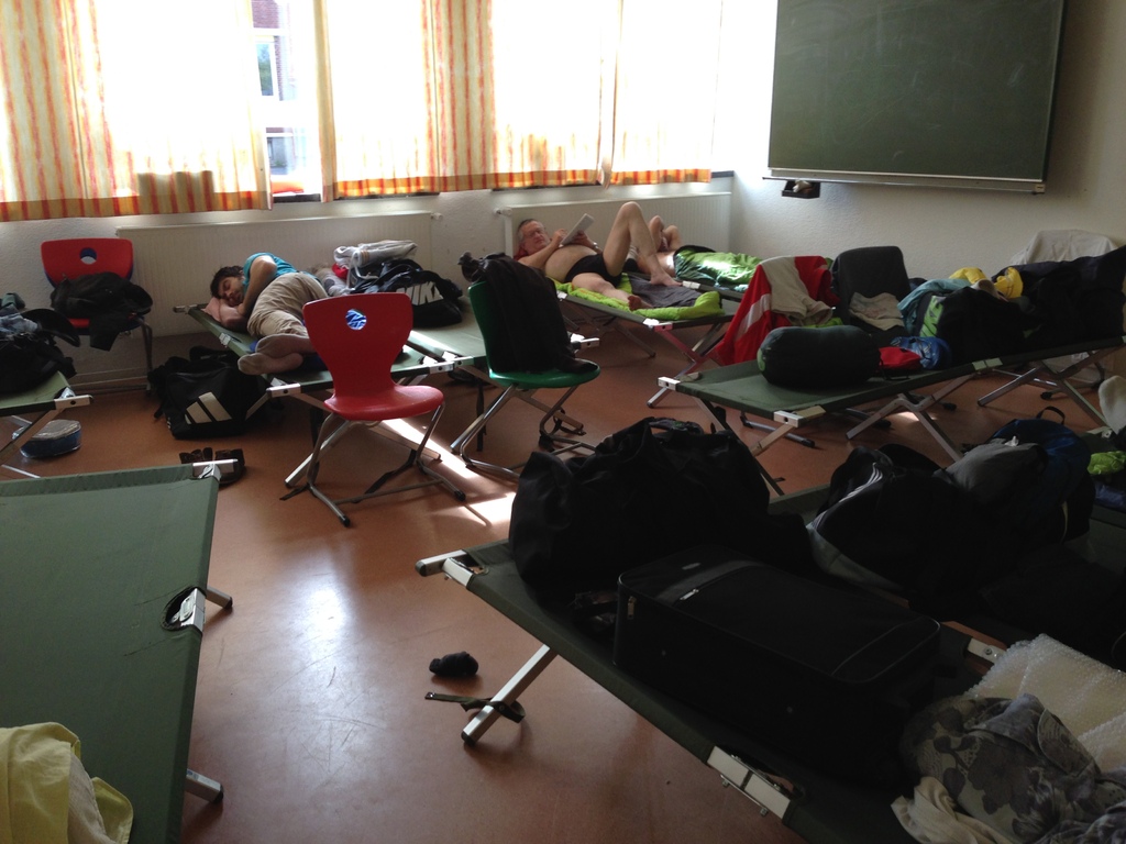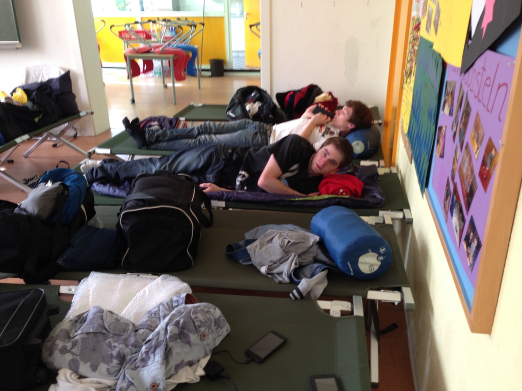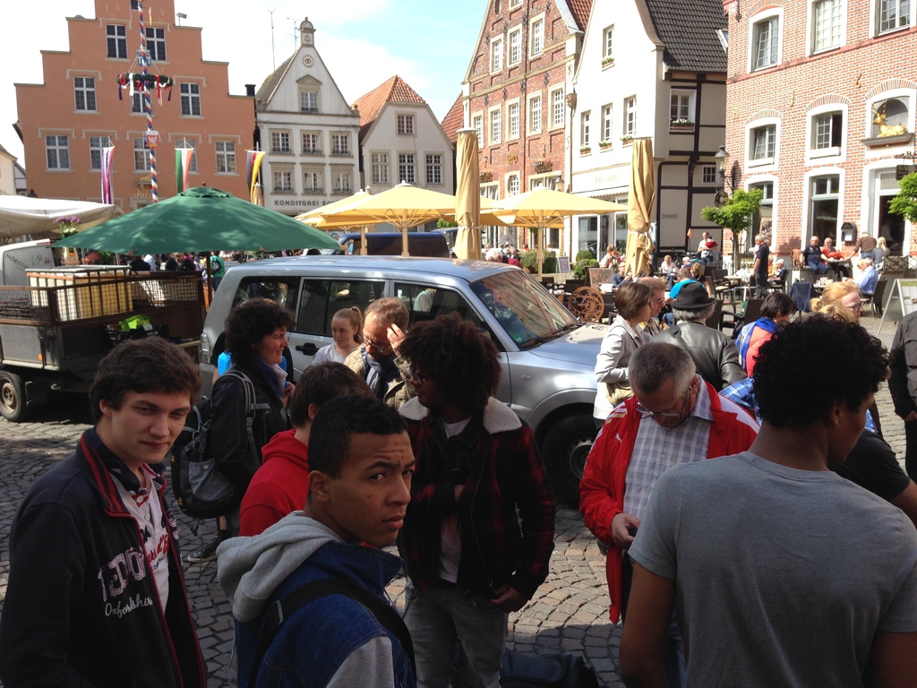 Après un long périple en bus de nuit le vendredi soir, les judokas arrivaient enfin le samedi matin avec les autres personnes participantes. N’ayant pu trouver des familles d’accueil pour tout le monde, les judokas étaient logés par la municipalité dans une école improvisée en gîte pour l’occasion. Après l’installation, les judokas se rendaient à Warendorf pour la cérémonie officielle du maire et des personnalités.