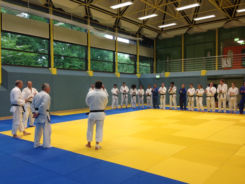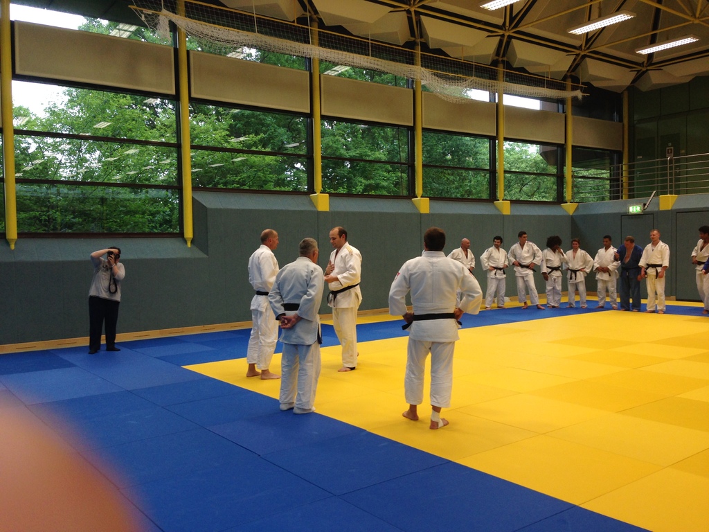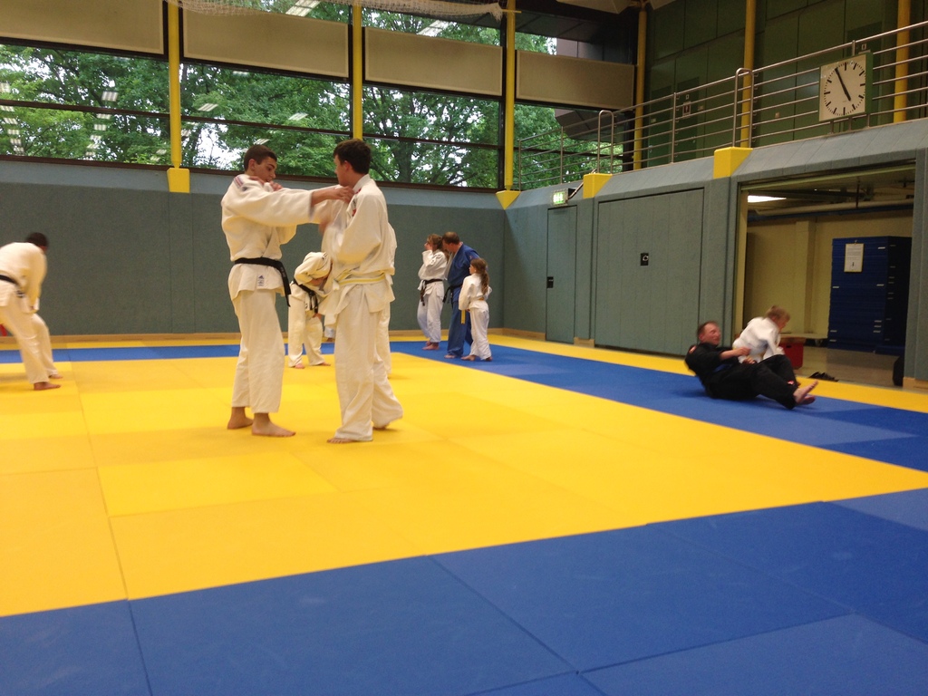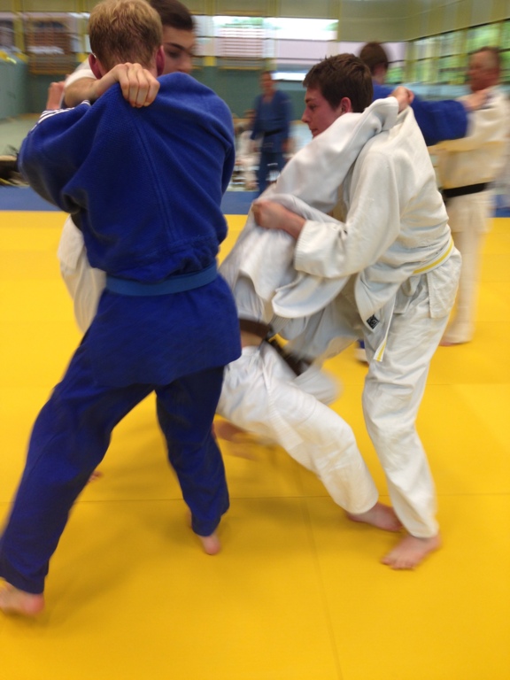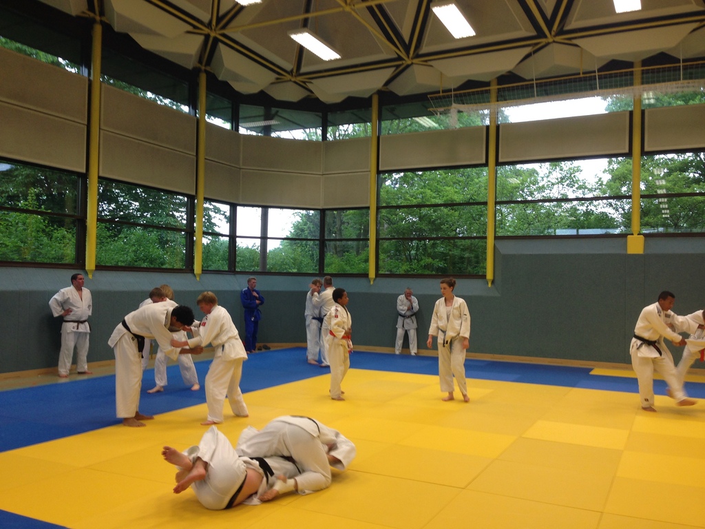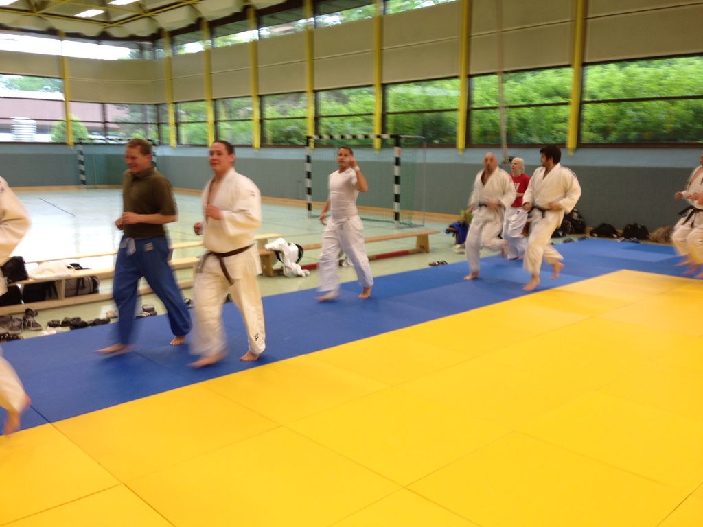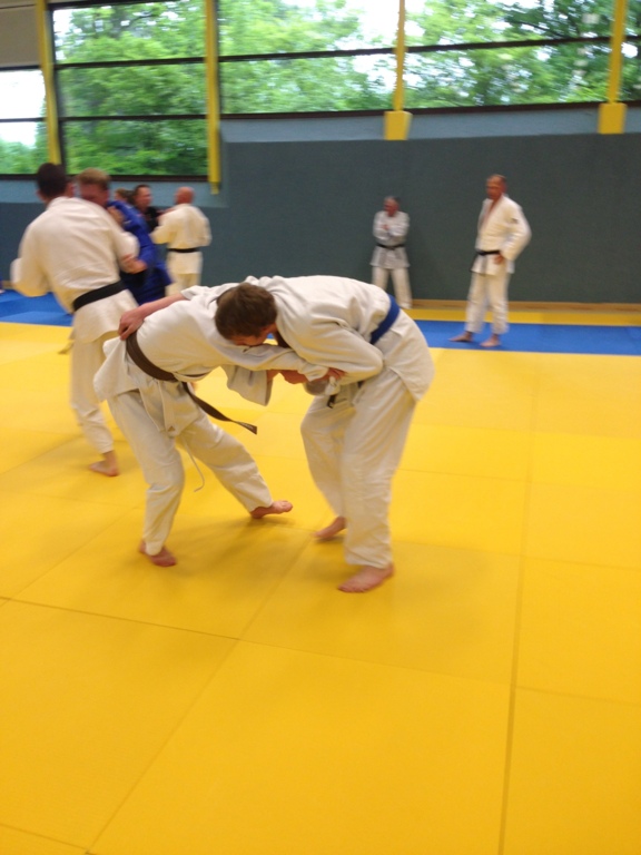 L’après-midi, un moment que les judokas du CAP attendaient avec impatience, la rencontre avec les judokas de Warendorf au sein de l’institut militaire de la ville. Nous y furent alors très bien accueillis par les deux professeurs et les élèves. Après un échauffement, ou « chauffage » pour nos traducteurs, intensif, la place était laissée au travail technique et enfin aux randoris (combats). A la fin du cours, afin de les remercier de leur accueil, le CAP avait décidé de leur offrir un cadre souvenir marquant, nous l’espérons une amitié renouée entre nos deux clubs.