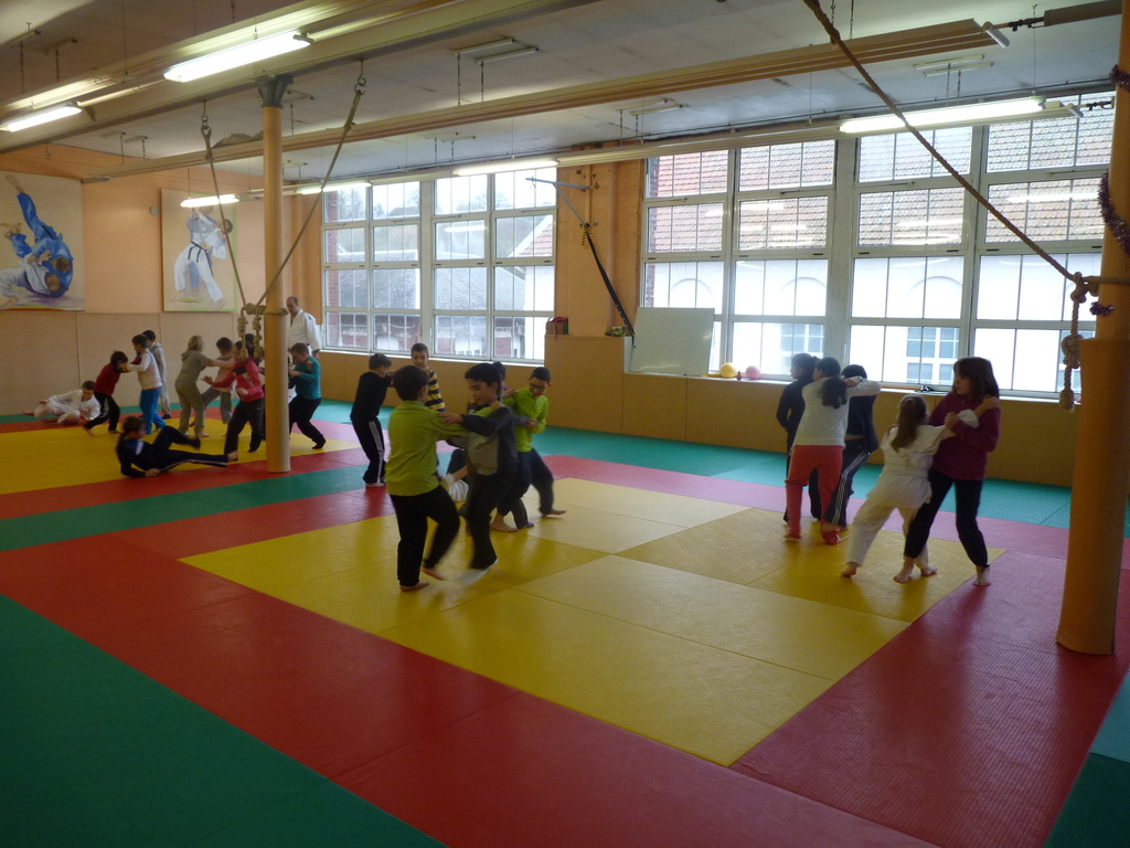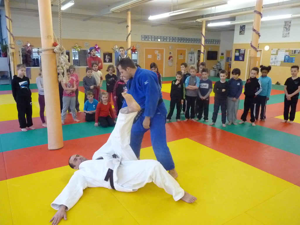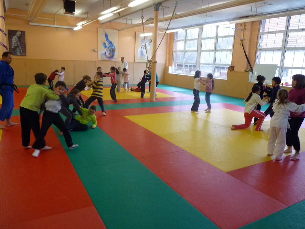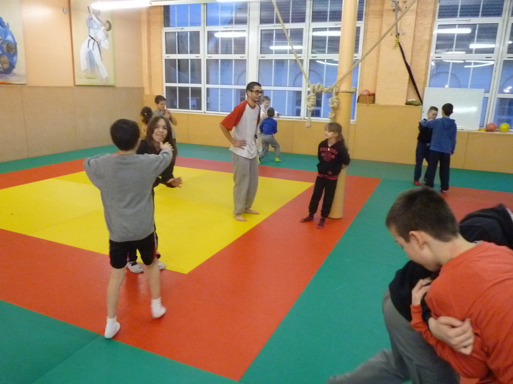 Les groupes s'enchaînaient donc toutes les 30 minutes et pouvaient alors s'initier à chaque art. Pour le judo, ils ont donc pu commencer à apprendre les chutes, comment gagner au judo en faisant tomber ou en immobilisant au sol.