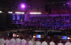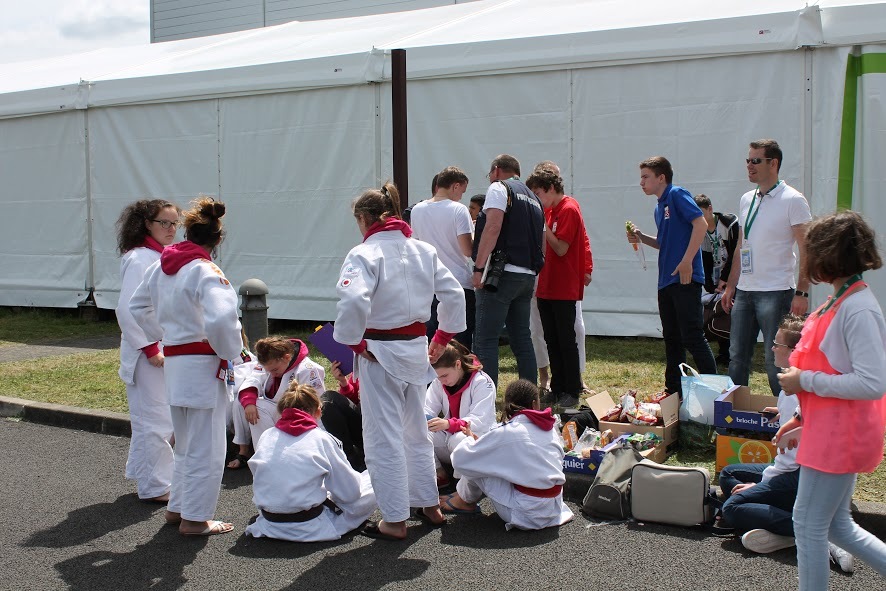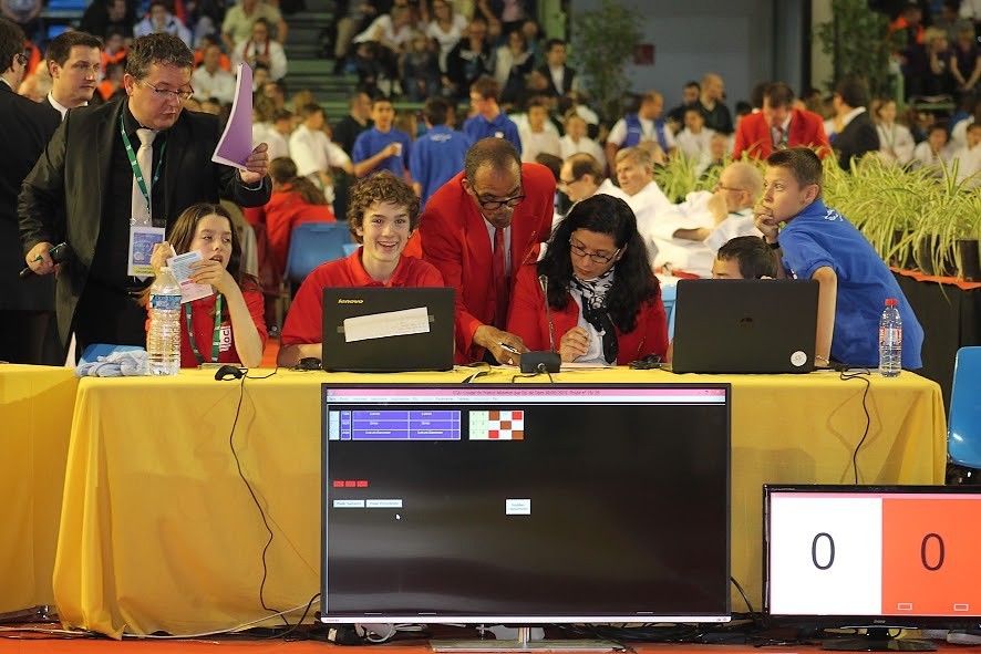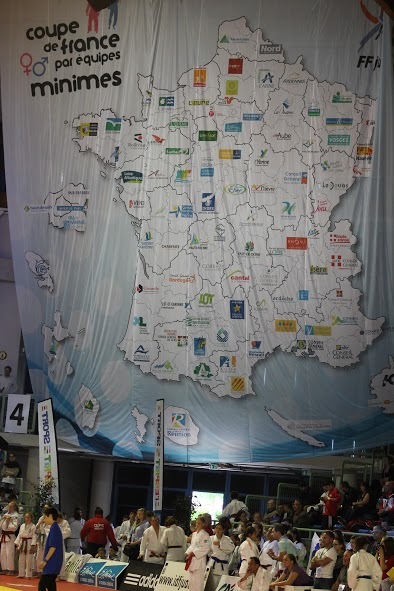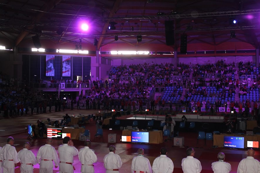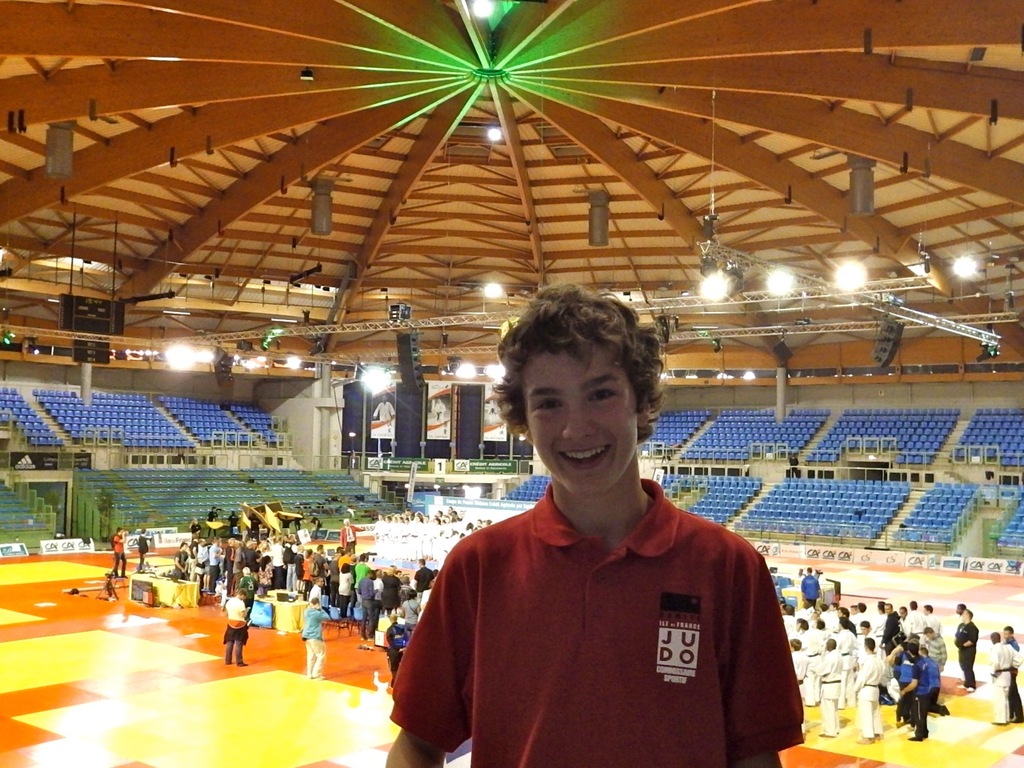 Le samedi matin Eliot entrait « dans l’arène » de ce Grand Dôme avec ses équipiers seinomarins... 16 surfaces de combat, 84 équipes (masc et fém), leurs accompagnants, la foule, le bruit, l'ambiance... Mais malheureusement, il ne put les suivre « de près » (les garçons terminent 5° et les filles 9°) puisqu’il ne pouvait prétendre à officier sur le même tatami.