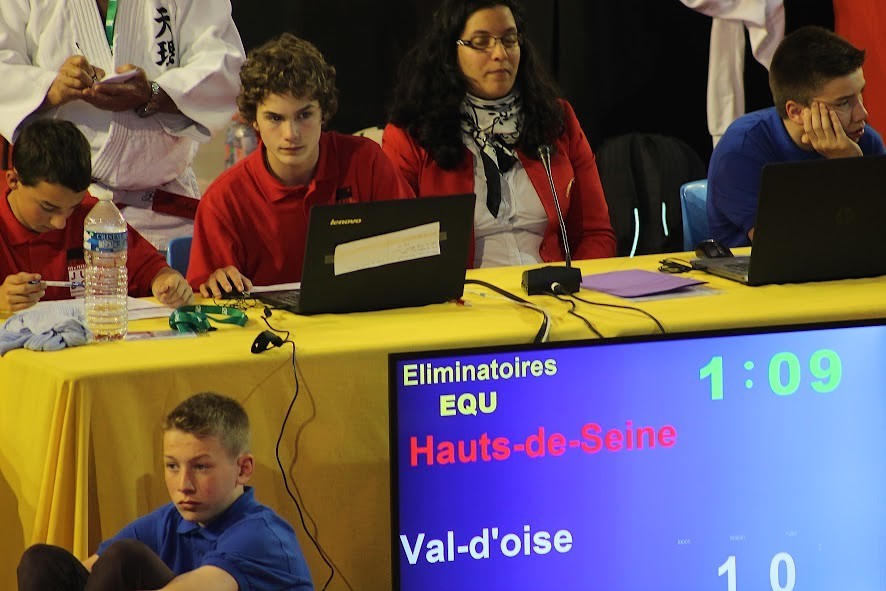 Une journée très dense, qui s’est terminée en apothéose: grâce à sa belle performance tout au long de la journée, Eliot a eu l’honneur d’être aux commandes en tant que commissaire-sportif sur la super-finale qui réunissait l’Essonne (nos hôtes, qui remportaient le trophée) et les Hauts de Seine (2°)