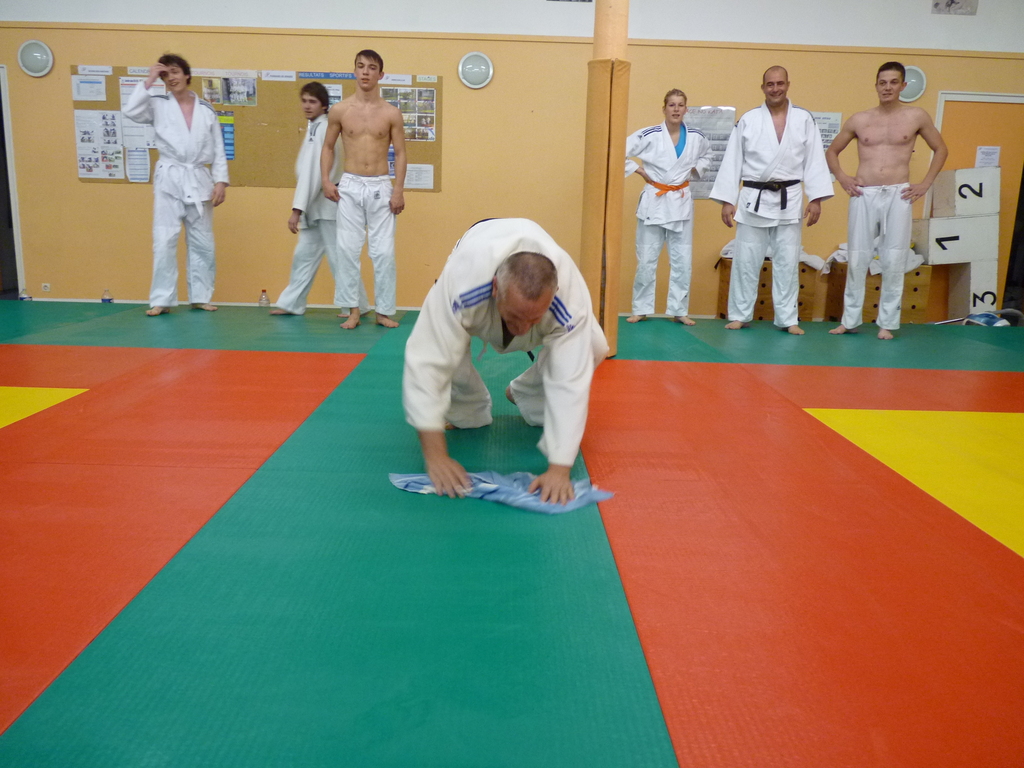Mercredi 26 novembre, les judokas du CAP avaient décidé de passer un grand coup de propre sur le tatami. Après que les benjamins / minimes aient pu passer l'aspirateur, ce fut au cours adulte de nettoyer le tatami en s'amusant.