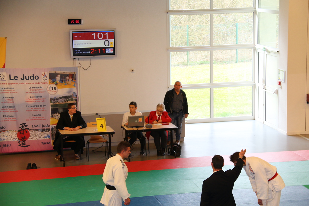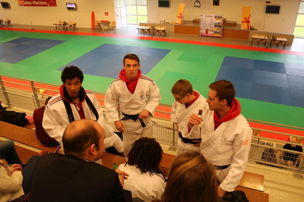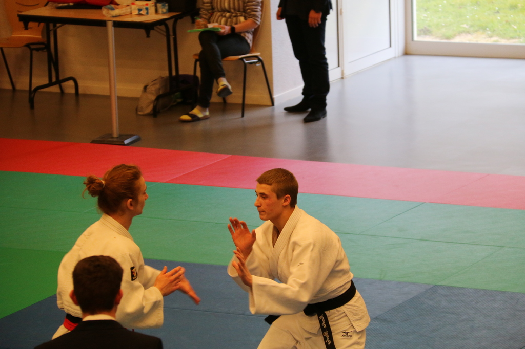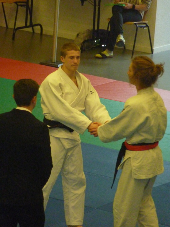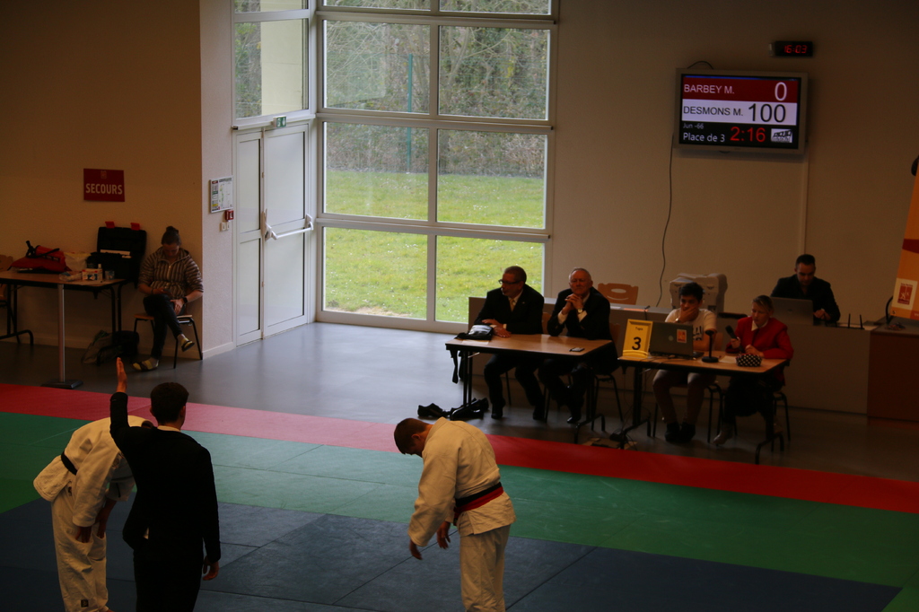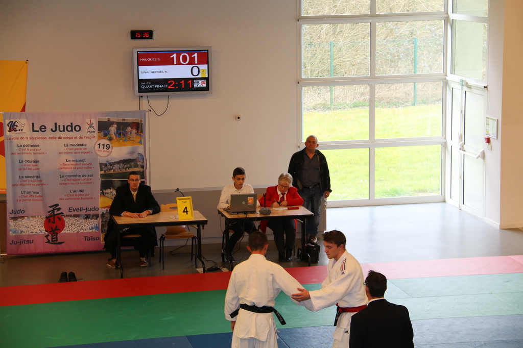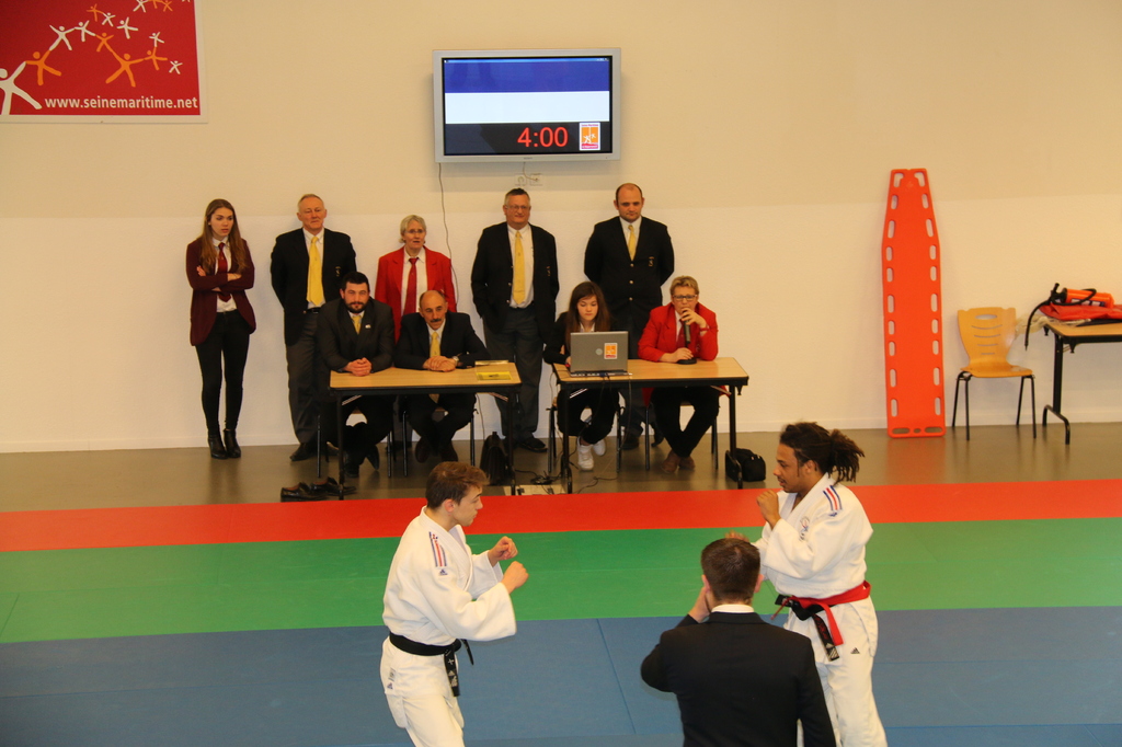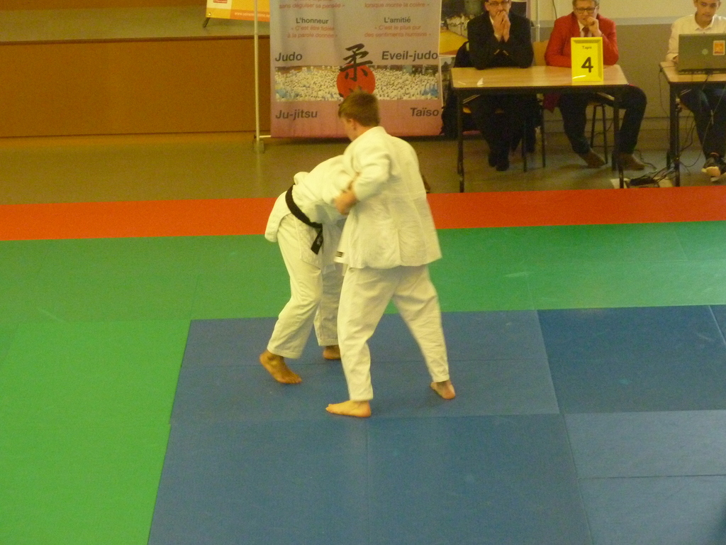 En -73, Valentin BOSSE perd son premier combat par un ippon et ne sera pas repêché. Il n'est pas classé. Alexandre RUFFE gagne son premier combat par un waza et un yuko mais s'incline sur son deuxième combat par deux waza. Il gagne ensuite ses deux combats de repêchage par ippon et se qualifie pour la place de 3 où il s'inclinera face à Sacha HAUGUEL en se faisant élinminer. Il termine donc 5ème. Sacha quant à lui gagne son premier combat par deux waza et son deuxième par ippon. Il s'inclinera ensuite en demi-finale face à Clément RUFFE par ippon. Il gagne ensuite sa place de 3 face à Alexandre et termine donc 3ème. Clément (qui est encore cadet) gagne ses deux premiers combats par ippon puis sa demi-finale face à Sacha également par ippon. Il gagne ensuite sa finale par un yuko et termine donc vainqueur de sa catégorie.