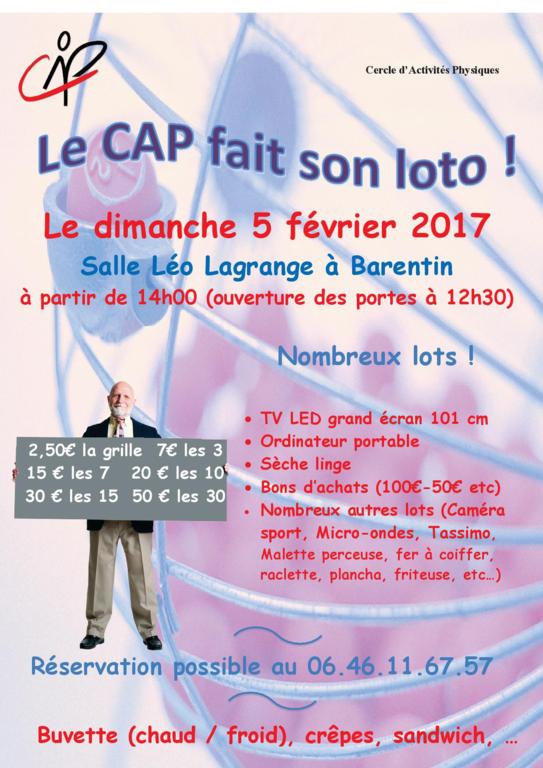 Dimanche 5 février, le Cercle d’Activités Physiques Pavilly-Barentin organisera son traditionnel loto à la salle Léo Lagrange de Barentin.