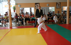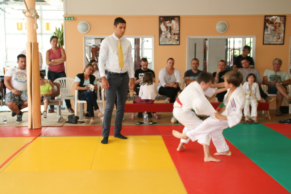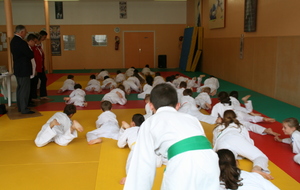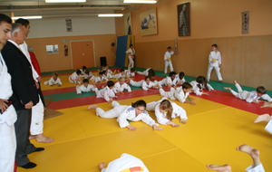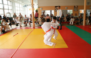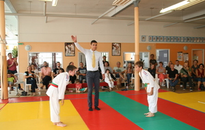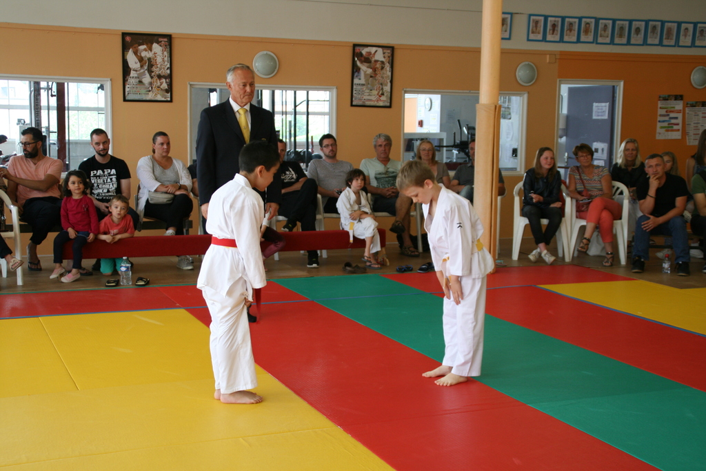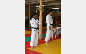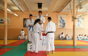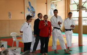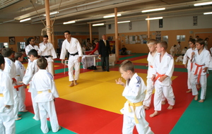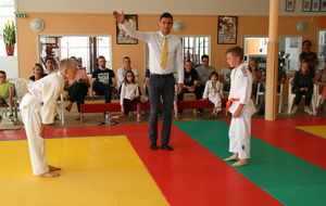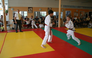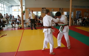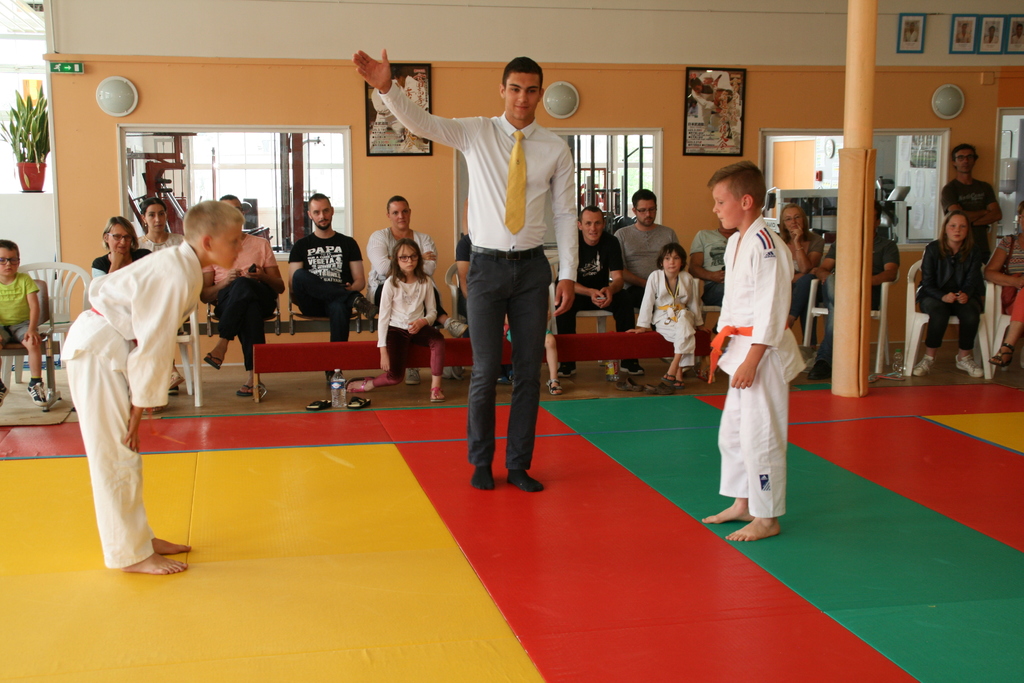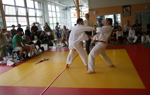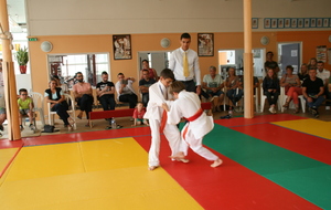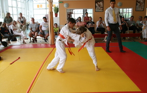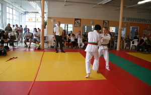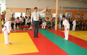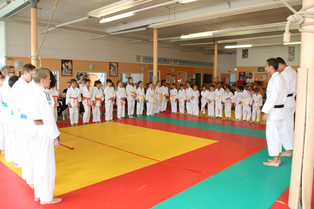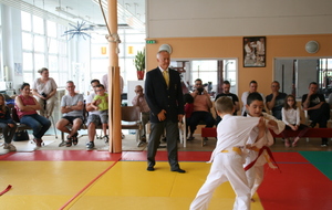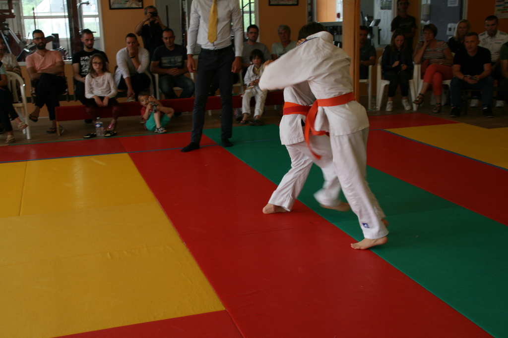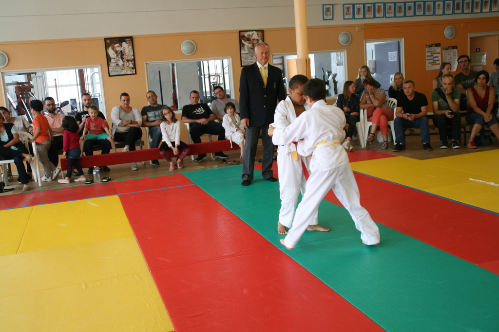 Après un salut tous ensemble pour ouvrir officiellement l'après-midi, les arbitres furent présentés : Jean-Pierre Defrance, 6ème dan, Arbitre National et Antonin Lory, 2ème Dan, vainqueur de la Coupe du jeune arbitre lorsqu'il était encore Cadet. Egalement pour orchestrer les combats : Baptiste Albert-Simar qui démarre la saison prochaine comme Commissaire-sportif stagiaire et Virginie Defrance Commissaire Sportif National et Arbitre départemental.