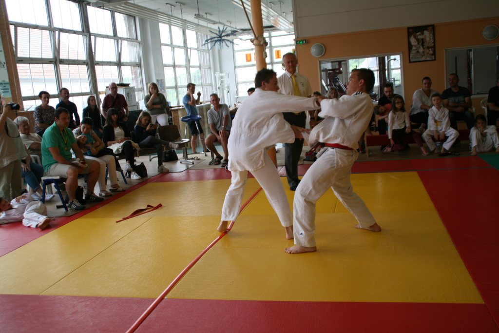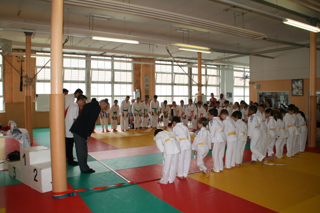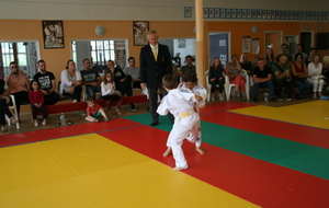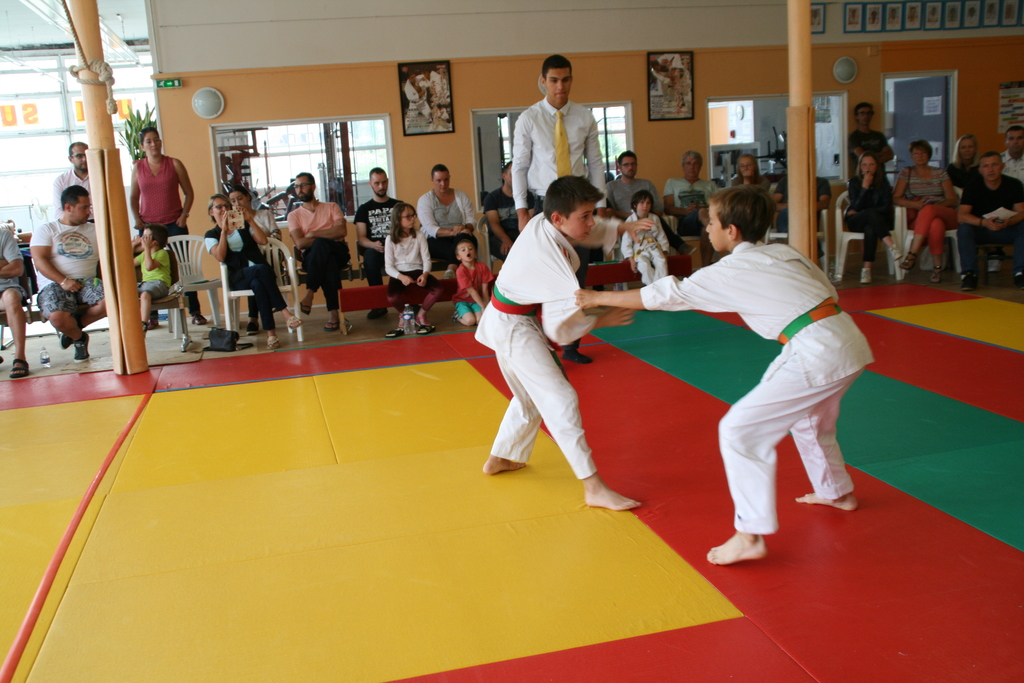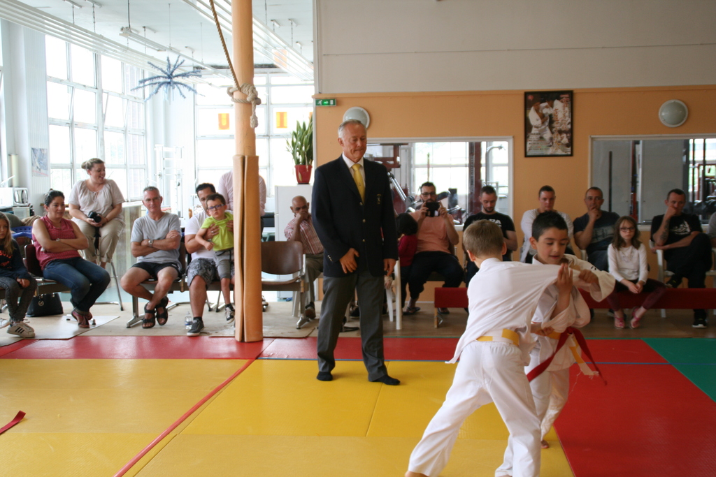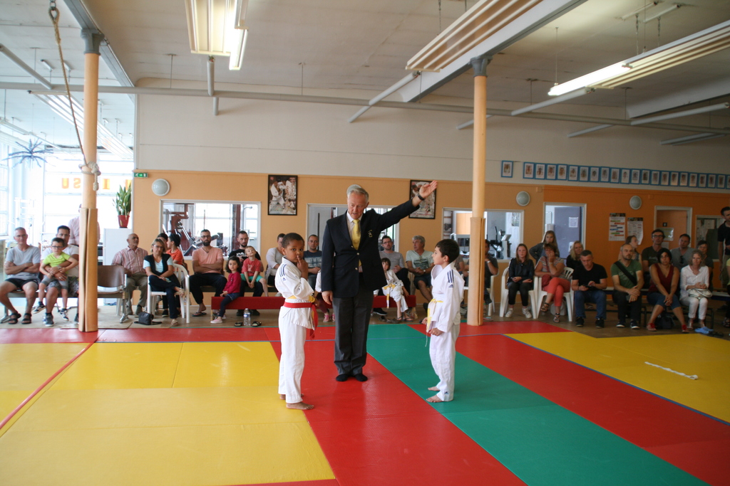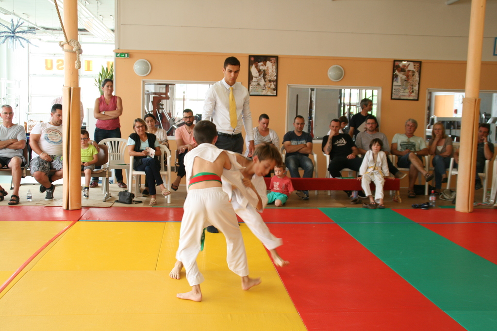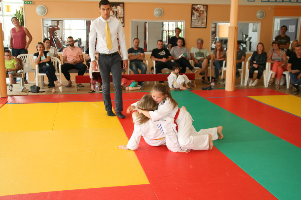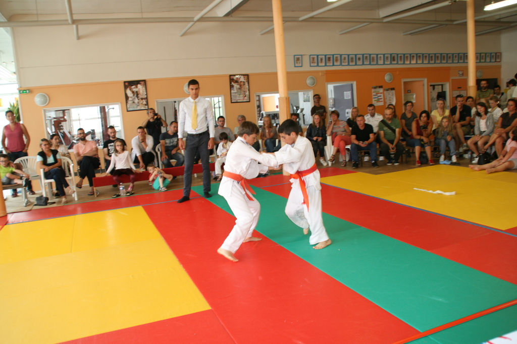 Après un salut tous ensemble pour ouvrir officiellement l'après-midi, les arbitres furent présentés : Jean-Pierre Defrance, 6ème dan, Arbitre National et Antonin Lory, 2ème Dan, vainqueur de la Coupe du jeune arbitre lorsqu'il était encore Cadet. Egalement pour orchestrer les combats : Baptiste Albert-Simar qui démarre la saison prochaine comme Commissaire-sportif stagiaire et Virginie Defrance Commissaire Sportif National et Arbitre départemental.
