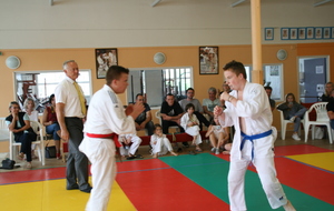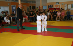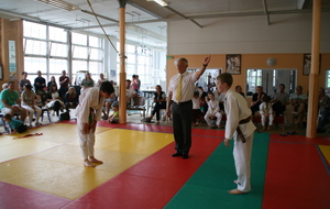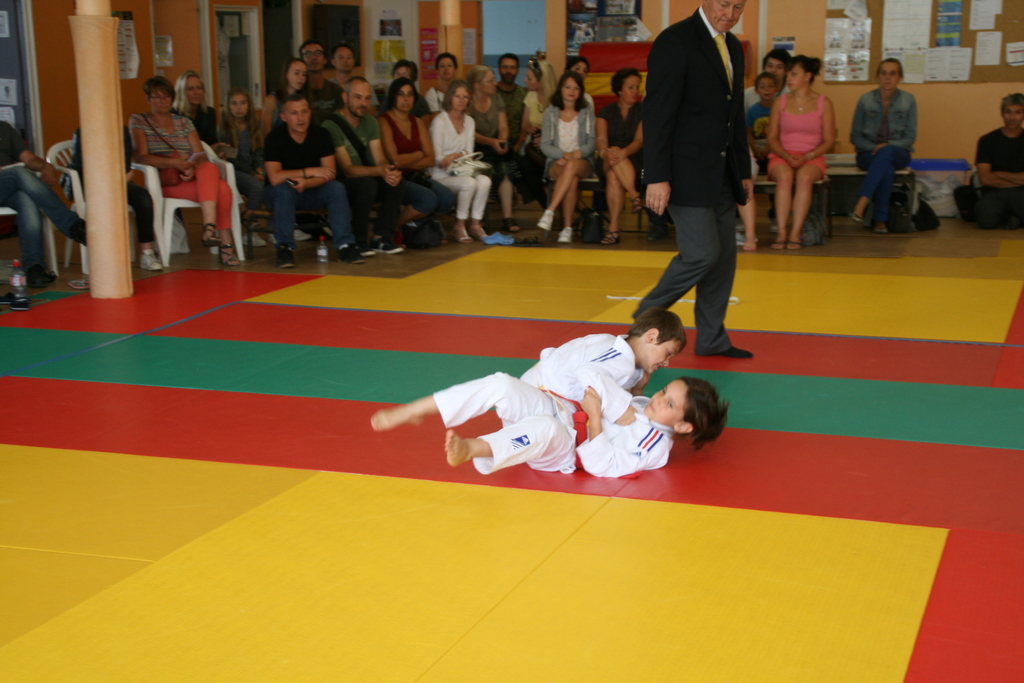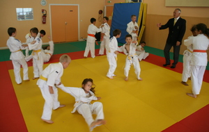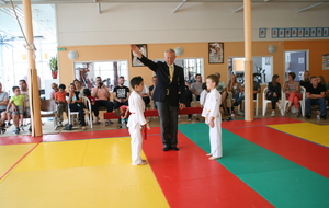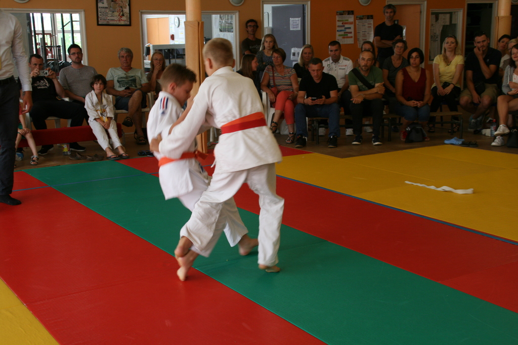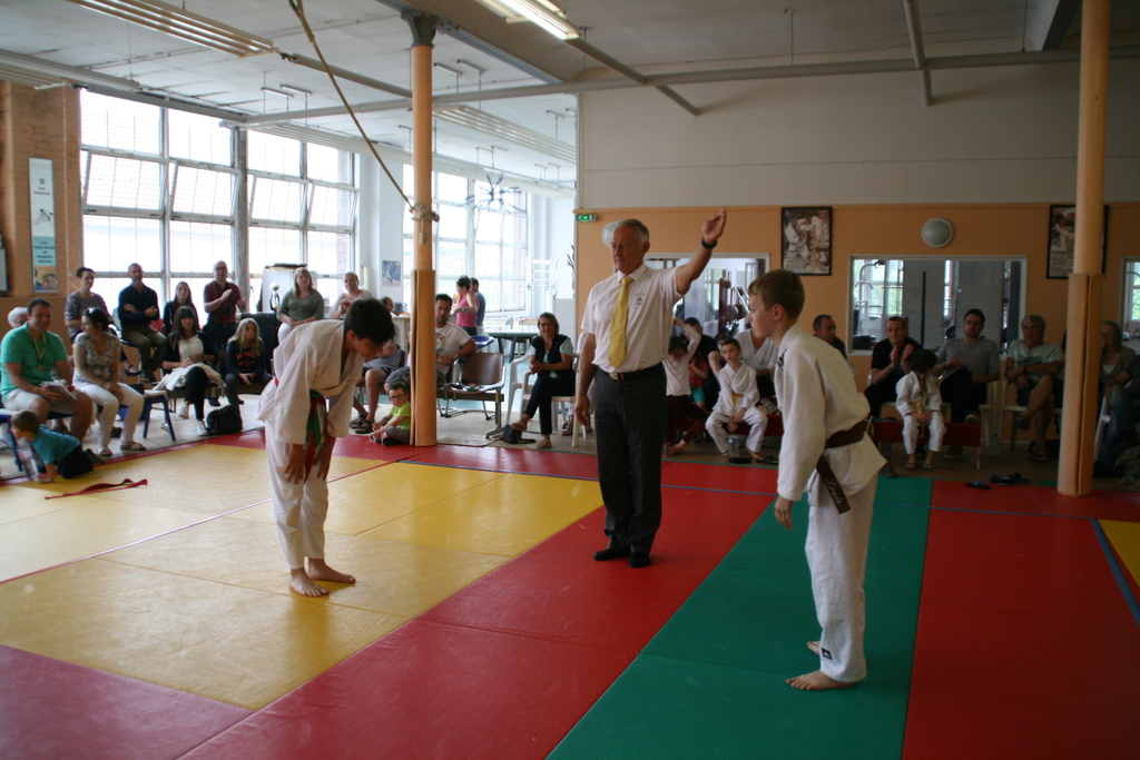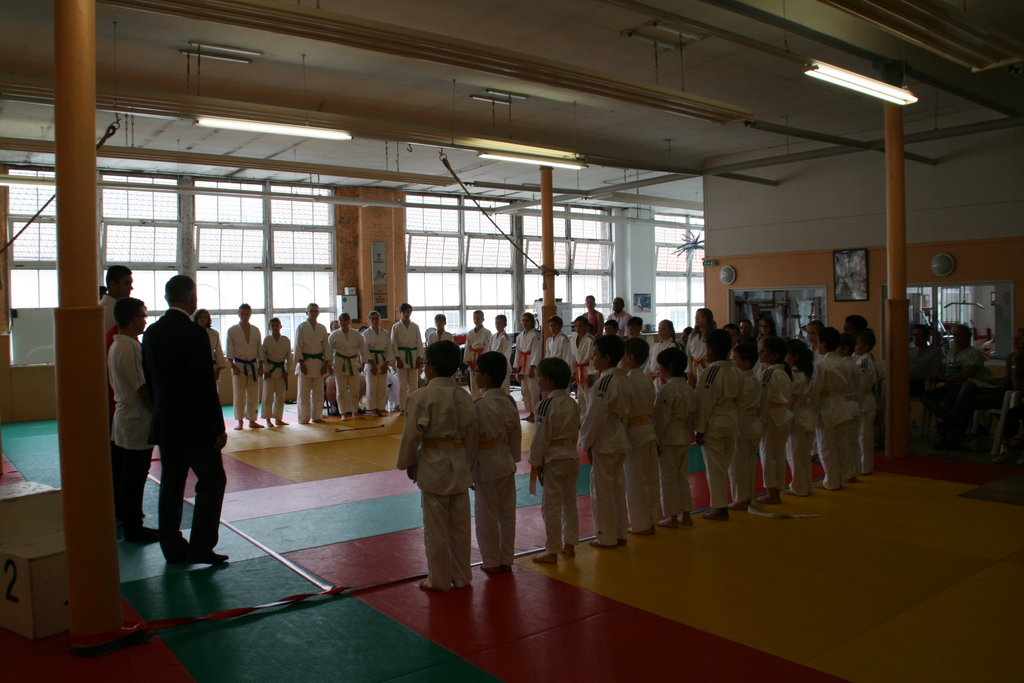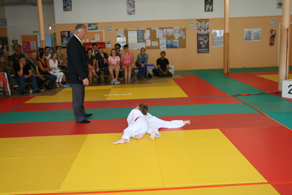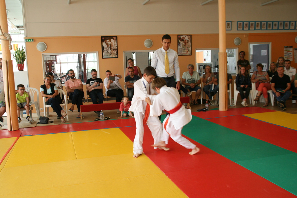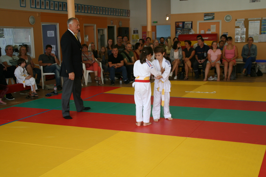 Après un salut tous ensemble pour ouvrir officiellement l'après-midi, les arbitres furent présentés : Jean-Pierre Defrance, 6ème dan, Arbitre National et Antonin Lory, 2ème Dan, vainqueur de la Coupe du jeune arbitre lorsqu'il était encore Cadet. Egalement pour orchestrer les combats : Baptiste Albert-Simar qui démarre la saison prochaine comme Commissaire-sportif stagiaire et Virginie Defrance Commissaire Sportif National et Arbitre départemental.