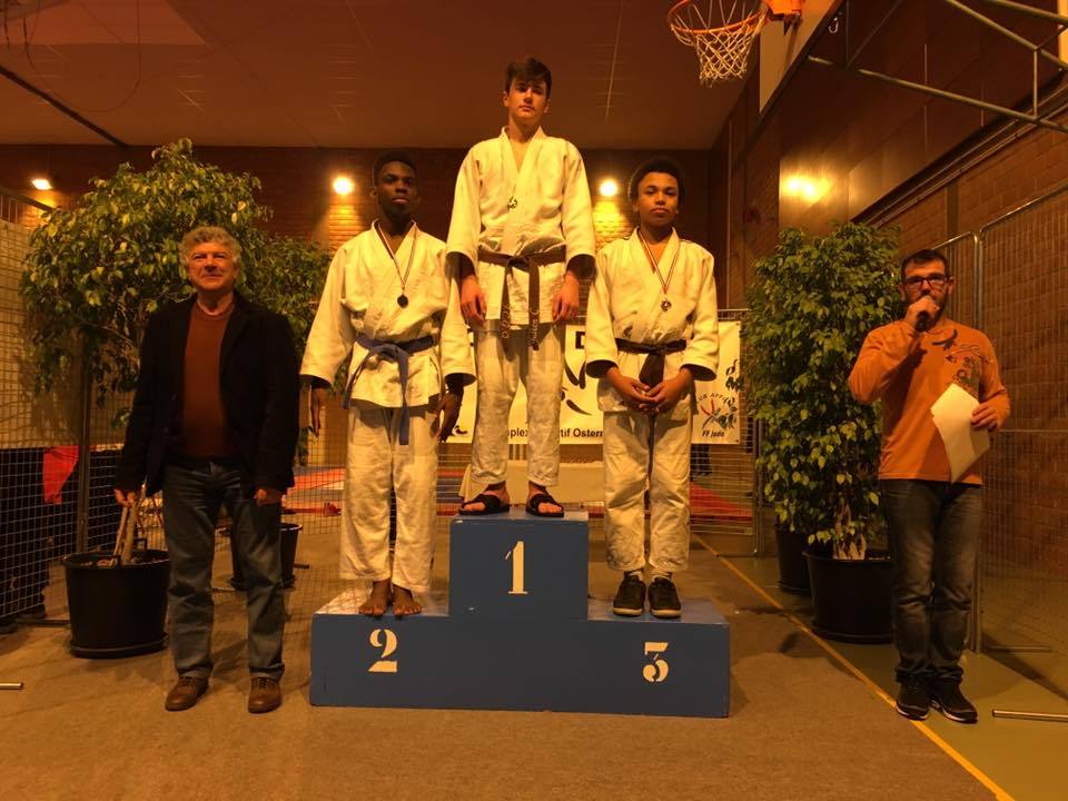 Enfin pour David en Poule 2 dans les -60Kg, la compétition commence tout aussi bien puisqu’il remporte son 1er puis son 2e combat. Il arrive donc en Finale dans la catégorie des 60Kg. Malheureusement il devra laisser la 1ere place à son adversaire. Il termine donc 2e ( Sur la 2e marche du Podium sur la Photo*)