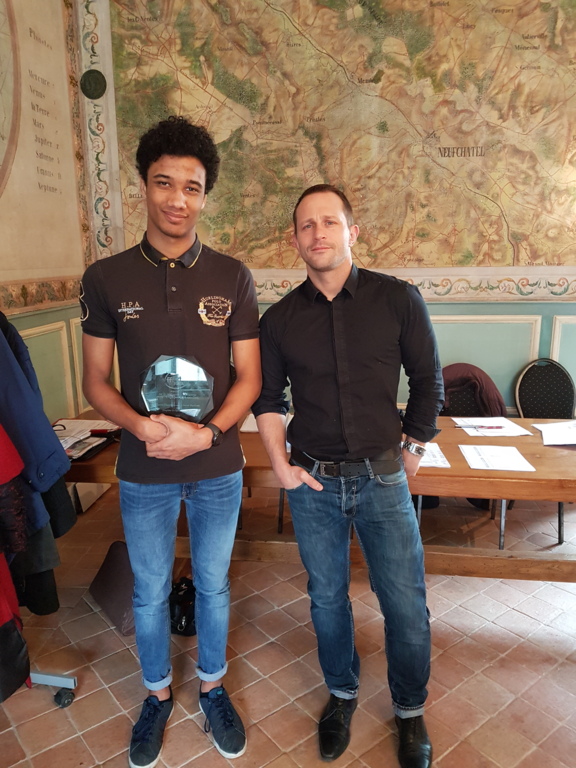 Le président du Cercle des MJSEA de l'agglomération Rouennaise, André Carpentier, a remis à Clément le Trophée devant de nombreuses personnalités et après un bref rappel du parcours et des succès obtenus par Clément durant ses déjà 13 ans de vie associative et sportive.