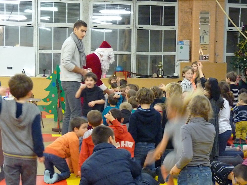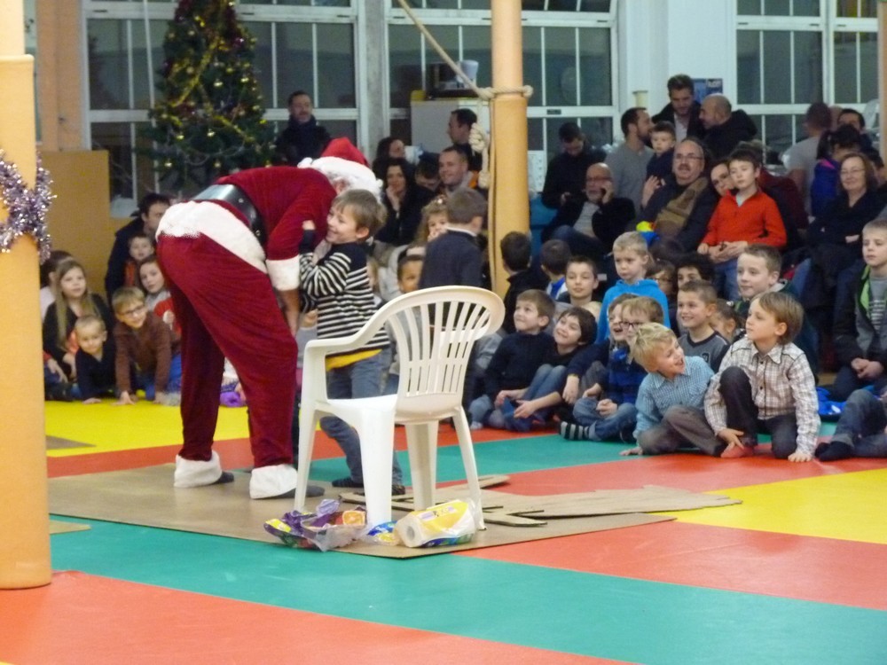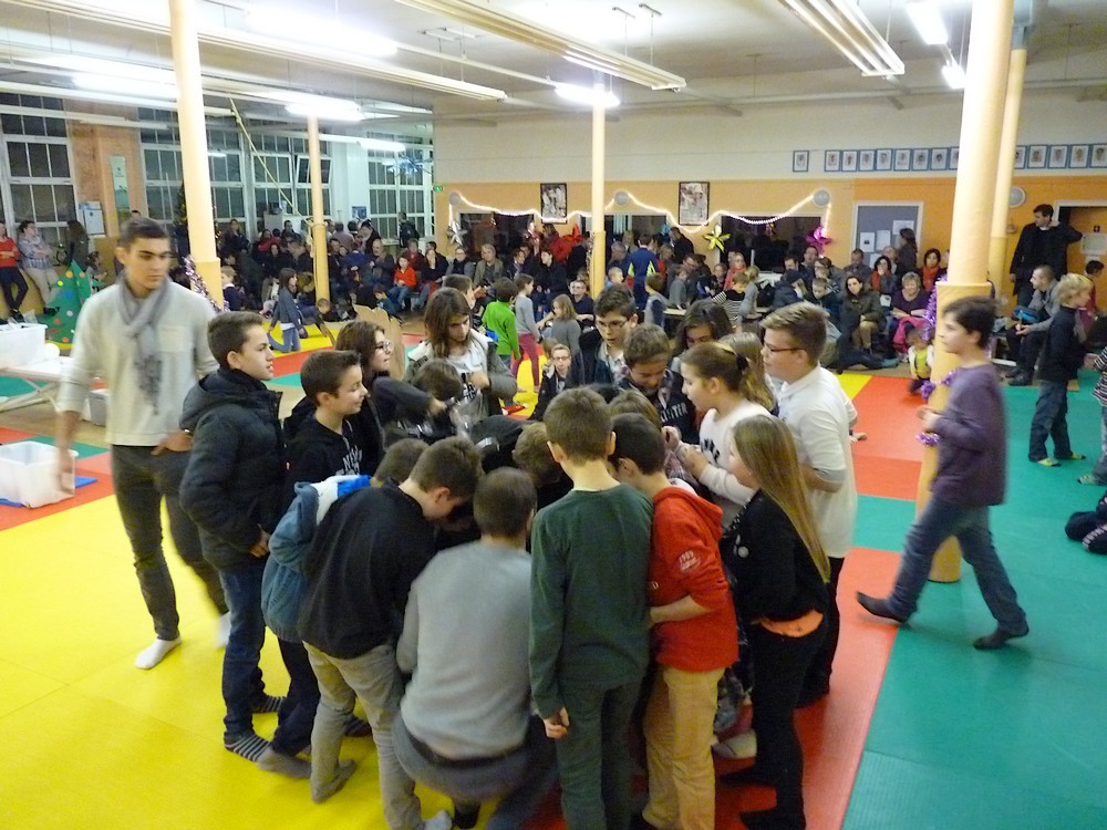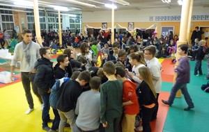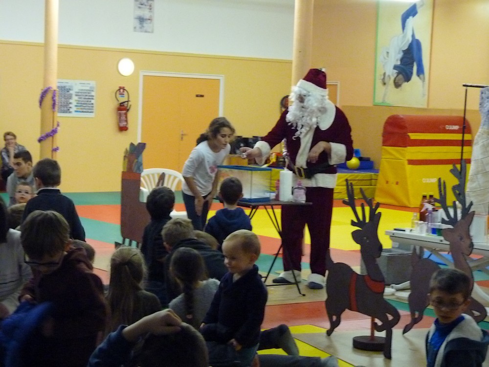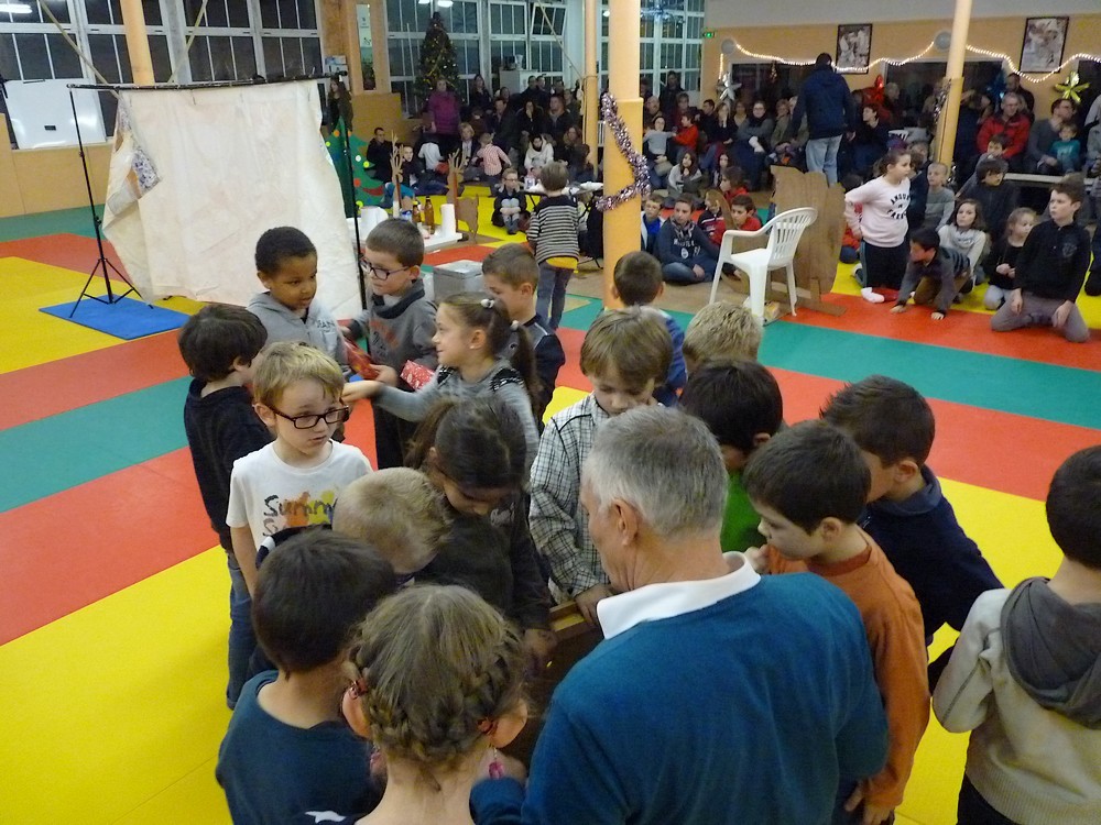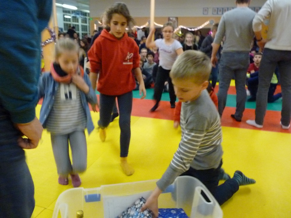 Puis ce fut, comme chaque année, le moment très attendu de l' échange de cadeau dans la caisse de présents réservée à chaque groupe d'âge... des 4/5ans aux adultes (toutes sections confondues)!