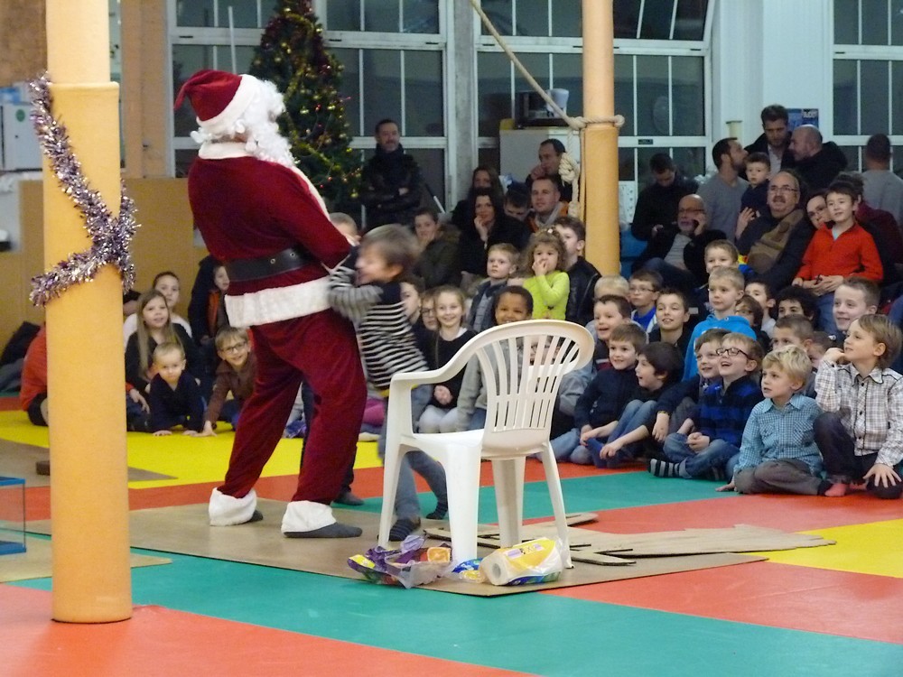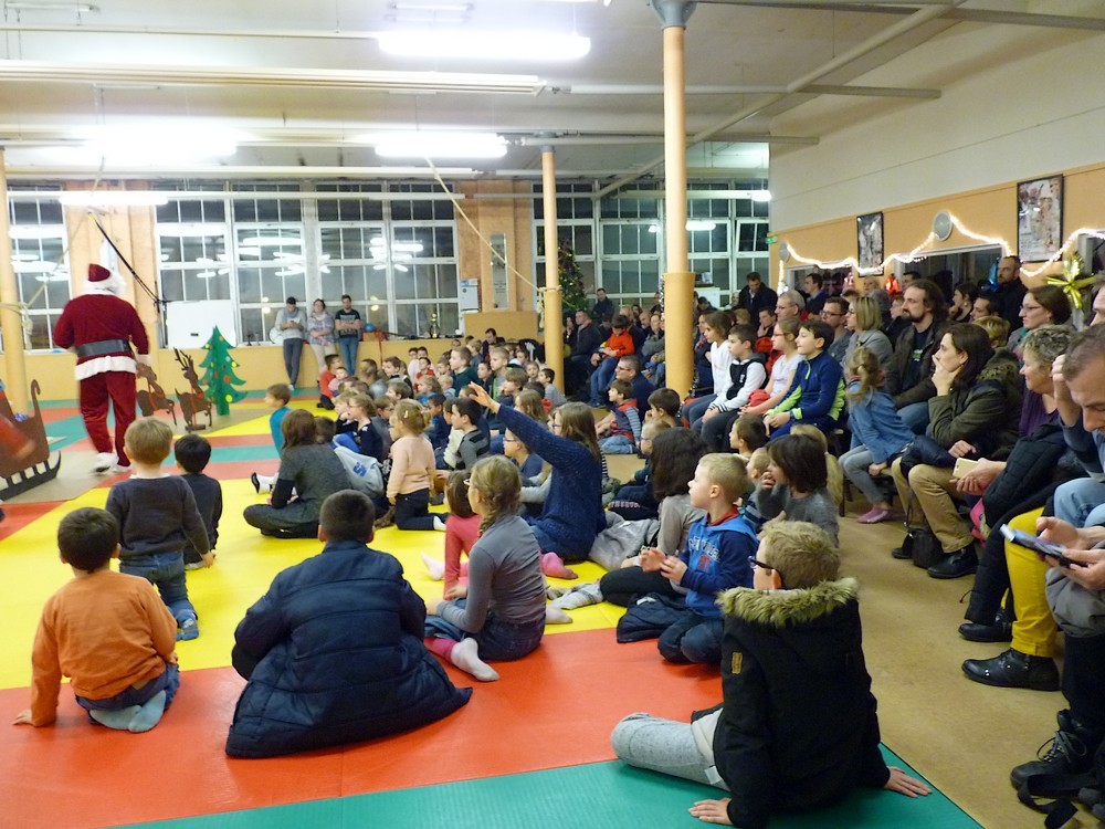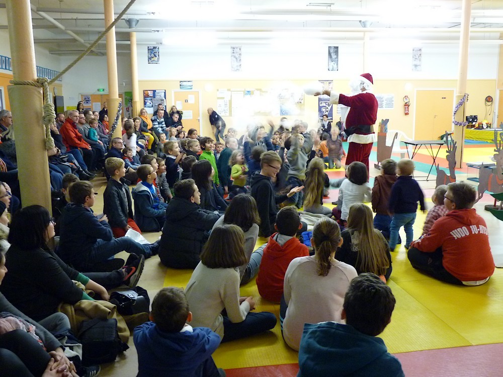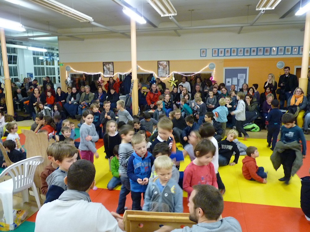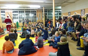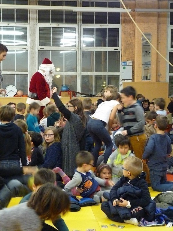 Puis ce fut, comme chaque année, le moment très attendu de l' échange de cadeau dans la caisse de présents réservée à chaque groupe d'âge... des 4/5ans aux adultes (toutes sections confondues)!