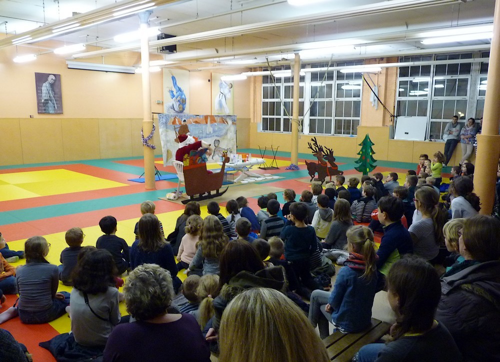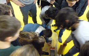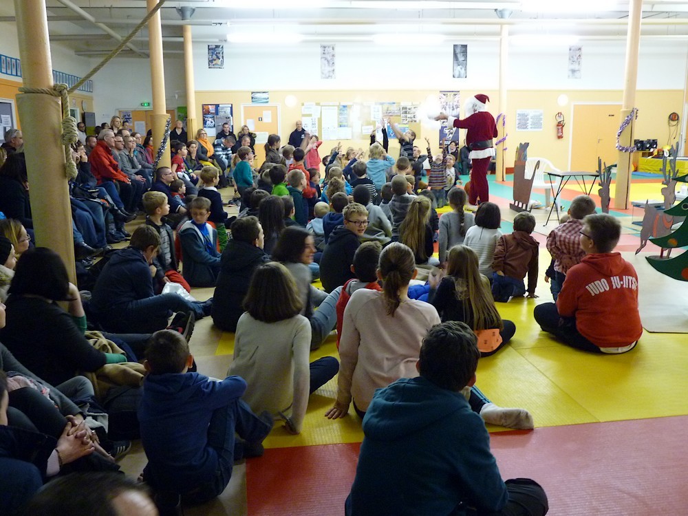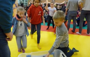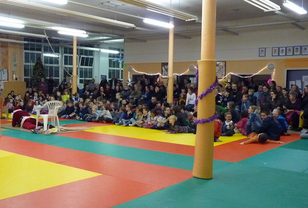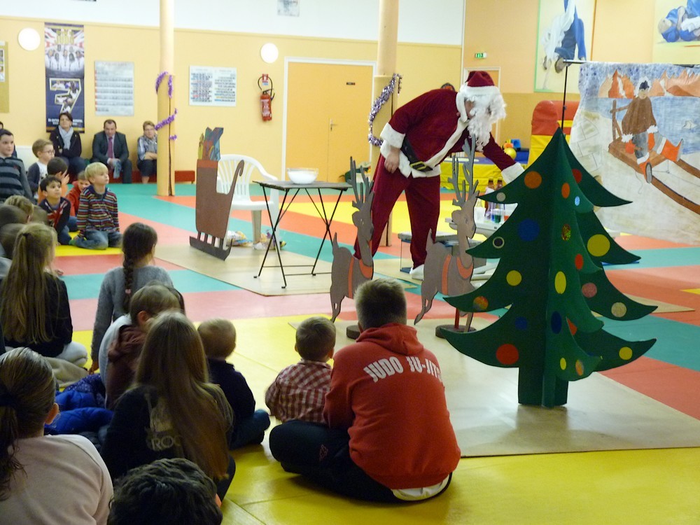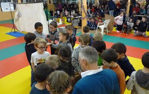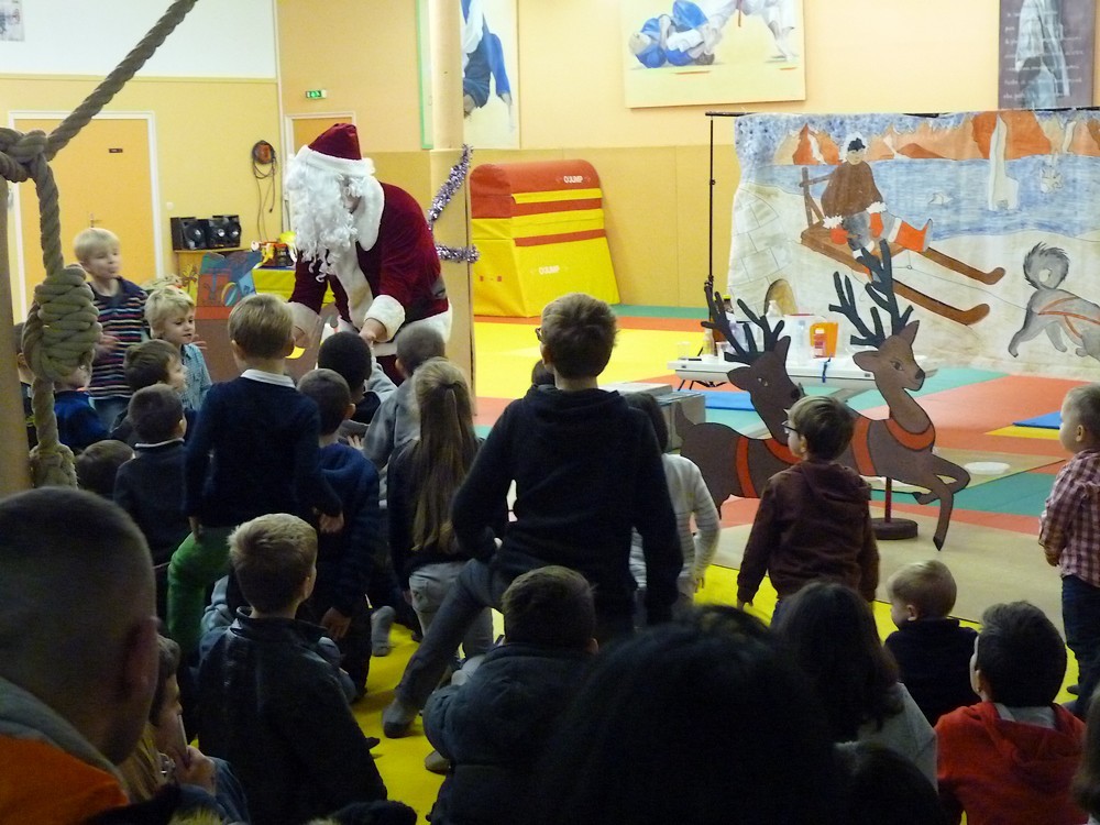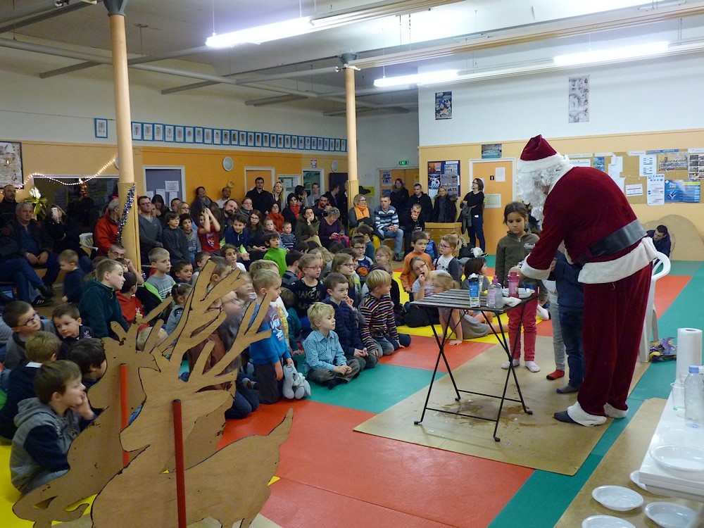Puis ce fut, comme chaque année, le moment très attendu de l' échange de cadeau dans la caisse de présents réservée à chaque groupe d'âge... des 4/5ans aux adultes (toutes sections confondues)!
