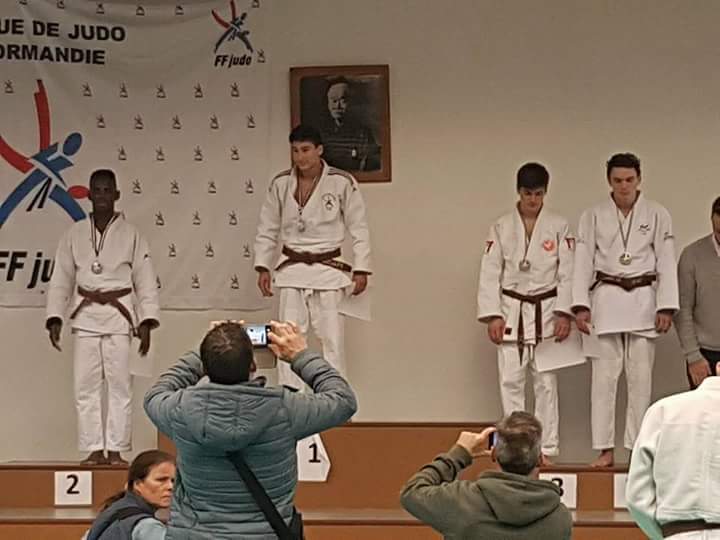 David Le Lièvre était engagé sur la coupe de Normandie Minimes qui se déroulait à Forges-les-Eaux. Cette coupe est qualificative pour la coupe de France Minimes qui aura lieu en décembre à Saint Quentin en Yveline. Notre minime a réussi à se qualifier pour cette coupe de France puisqu’il finit 2ème de la catégorie des -60kgs. En effet, malgré un combat très engagé de la part de David en finale, notre capiste chute et monte sur la deuxième marche du podium. David devient donc vice-champion de Normandie et pourra défendre les couleurs du club au plus au niveau national en Minimes.