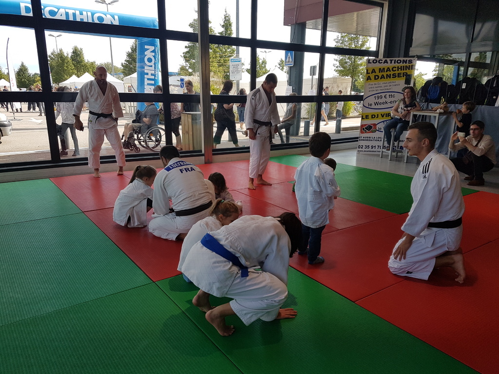 Plusieurs judokas, David, Théo, Hugo, Lyne, Gaëlle, Antonin, Clément et bien sûr Jeremy Defrance ont proposé des démonstrations et permis à un grand nombres d'enfants de s'initier.