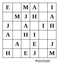 Fais bien attention à ce qu'une même lettre ne figure qu'une seule fois par colonne et une seule fois par ligne,