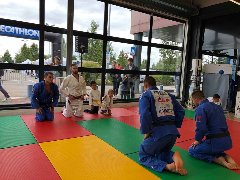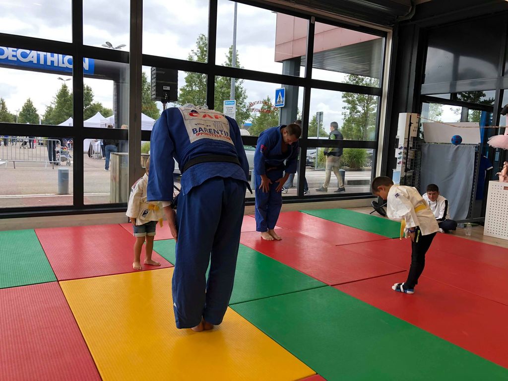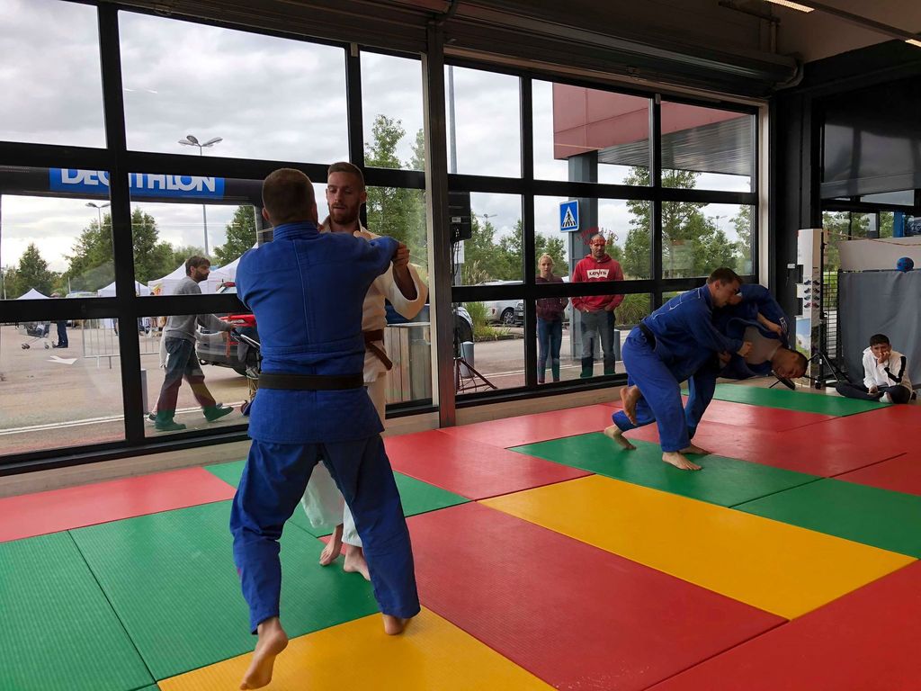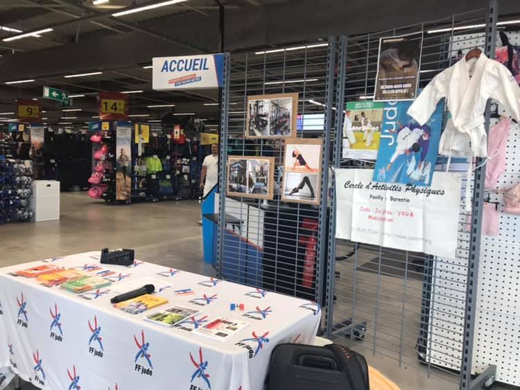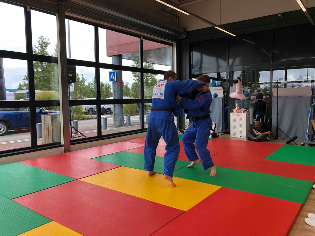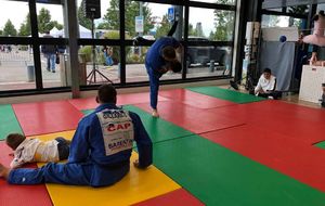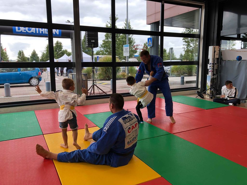 Le CAP y avait un stand de choix à l'entrée du magasin avec une surface de tatami permettant démonstrations et initiations. Une a d'ailleurs eu lieu le matin et une autre l'après-midi. Elles ont été faites a tour de rôle par les 2 professeurs de judo du CAP, Jérémy DEFRANCE et Jean-Pierre DEFRANCE.