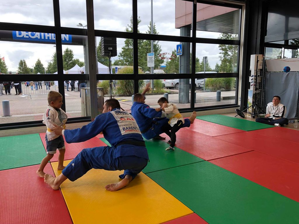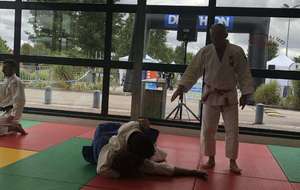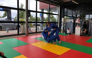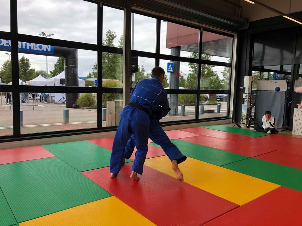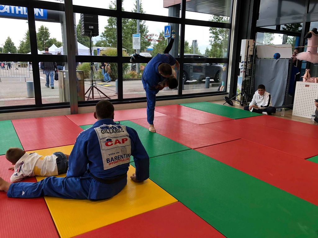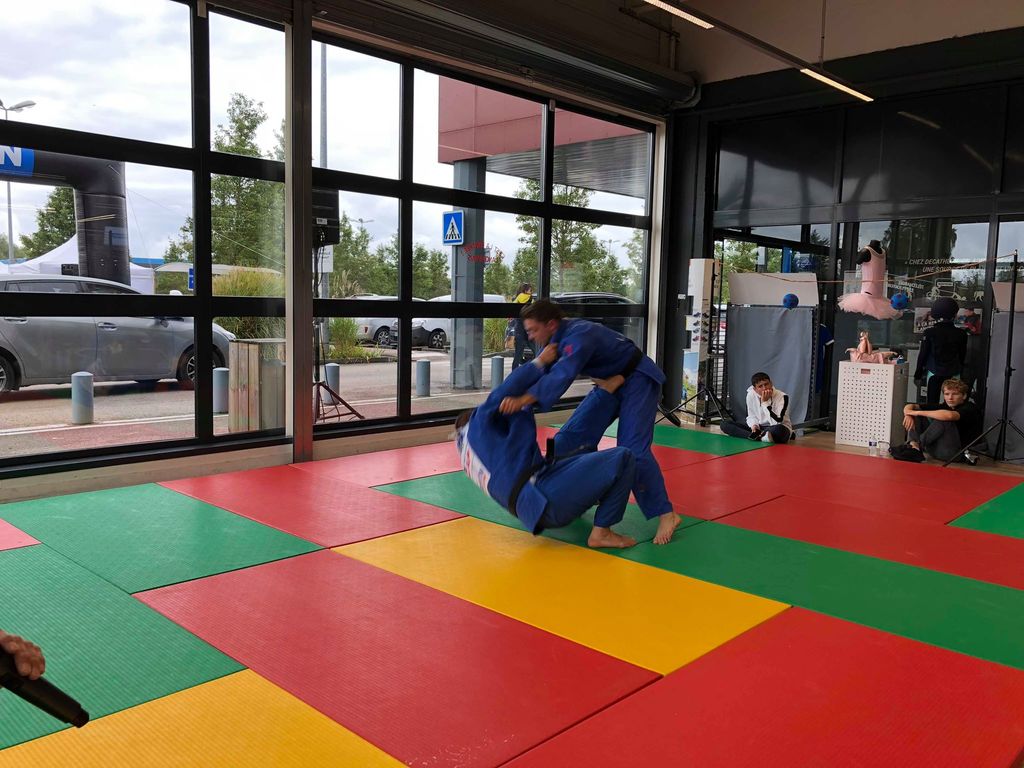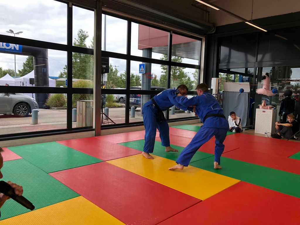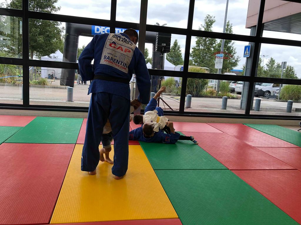 Le CAP y avait un stand de choix à l'entrée du magasin avec une surface de tatami permettant démonstrations et initiations. Une a d'ailleurs eu lieu le matin et une autre l'après-midi. Elles ont été faites a tour de rôle par les 2 professeurs de judo du CAP, Jérémy DEFRANCE et Jean-Pierre DEFRANCE.