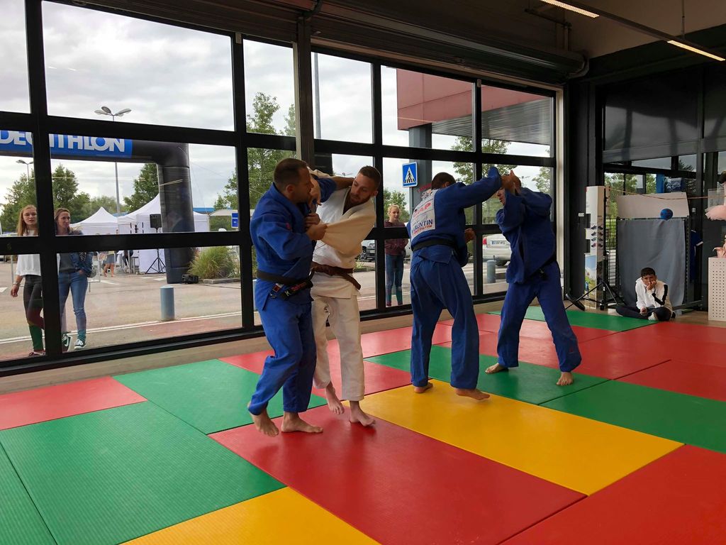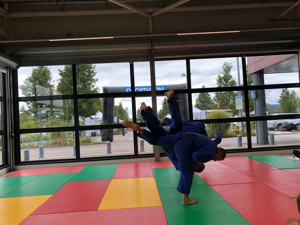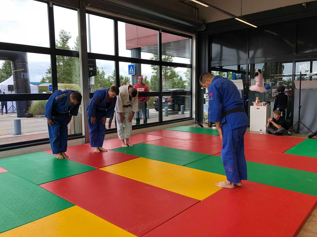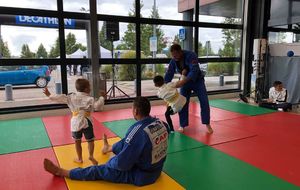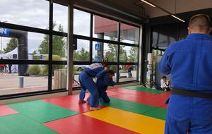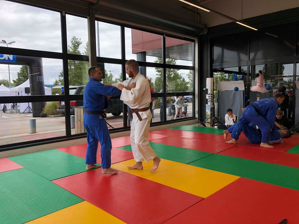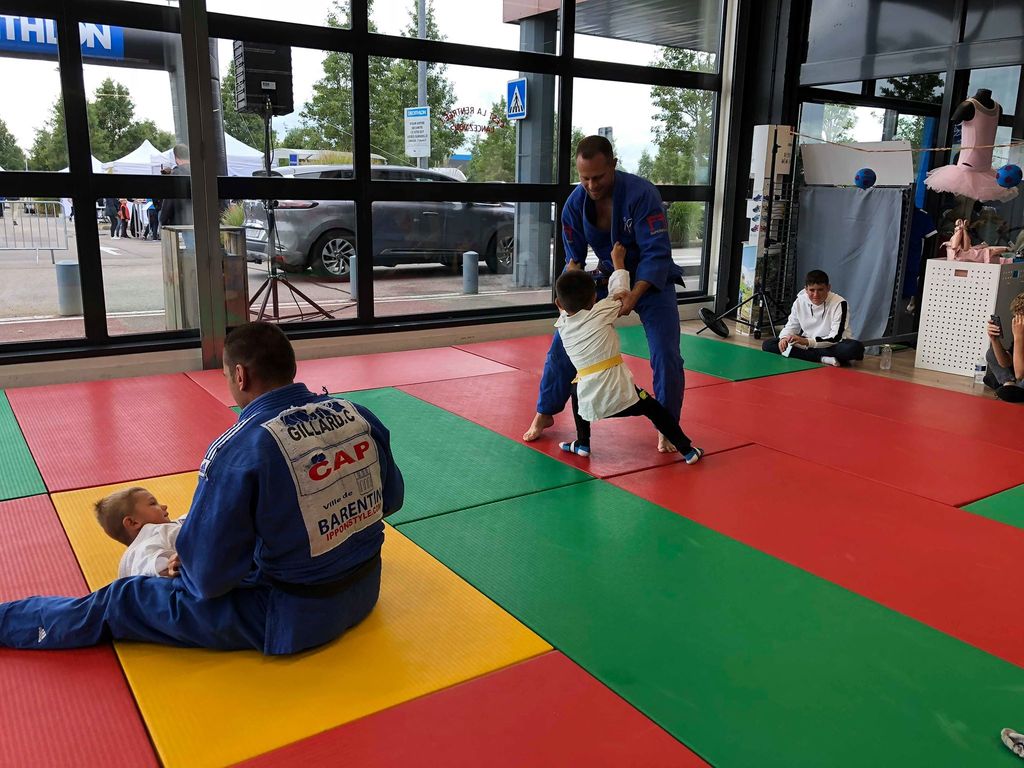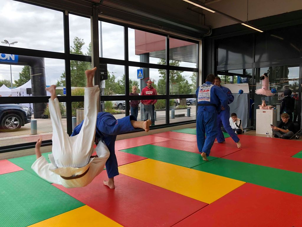 Le CAP y avait un stand de choix à l'entrée du magasin avec une surface de tatami permettant démonstrations et initiations. Une a d'ailleurs eu lieu le matin et une autre l'après-midi. Elles ont été faites a tour de rôle par les 2 professeurs de judo du CAP, Jérémy DEFRANCE et Jean-Pierre DEFRANCE.