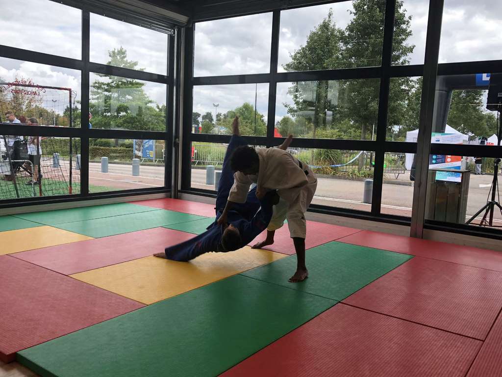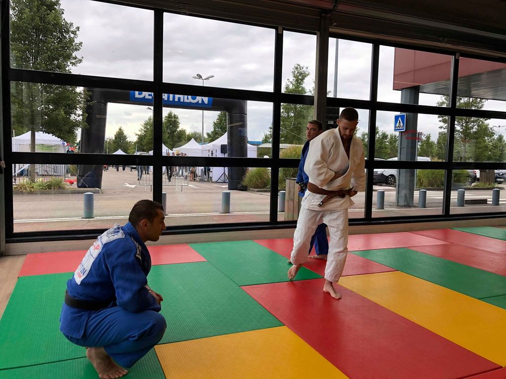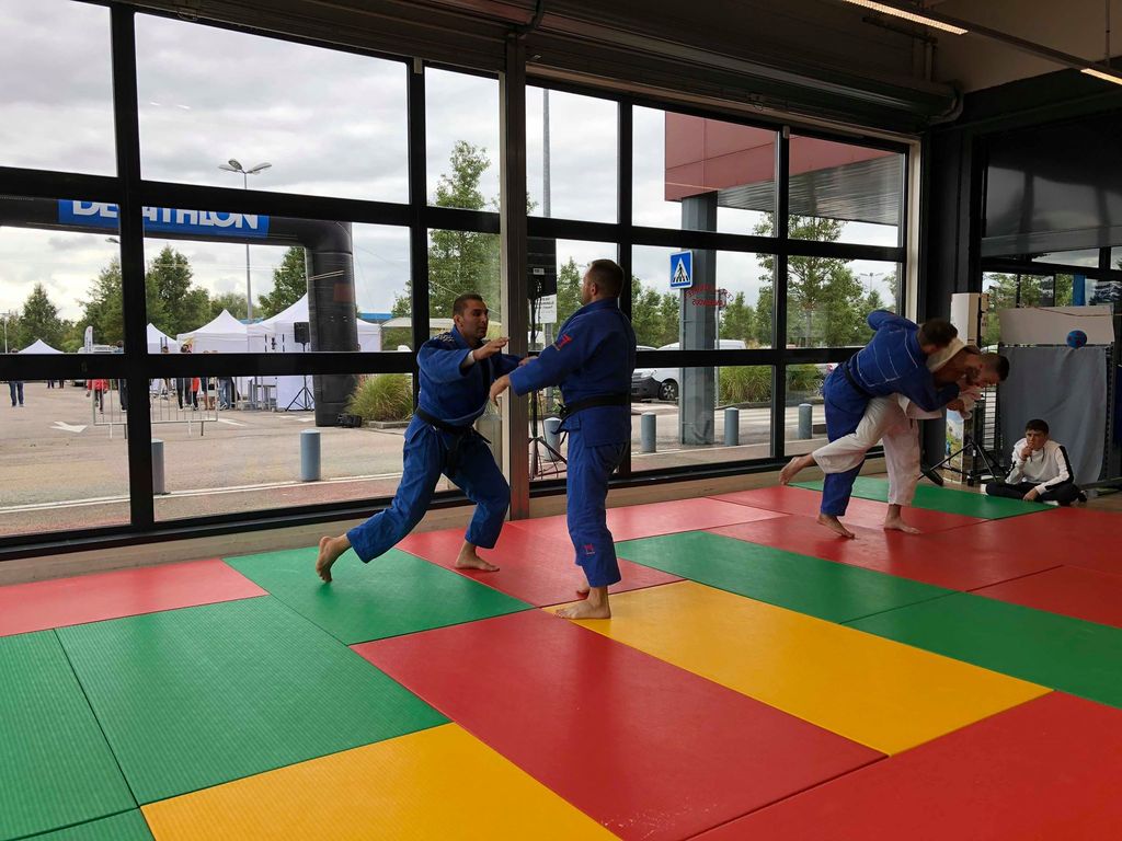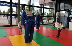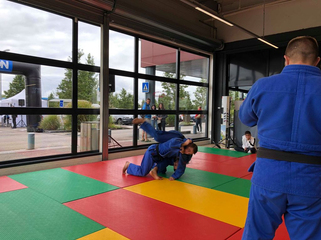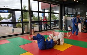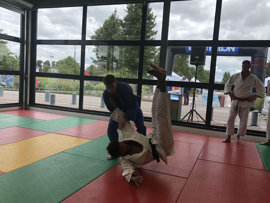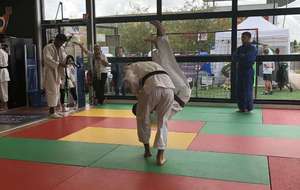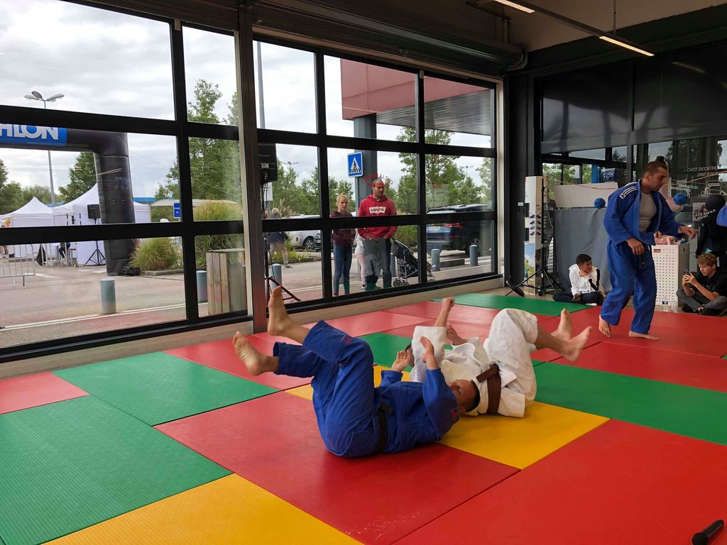 Le CAP y avait un stand de choix à l'entrée du magasin avec une surface de tatami permettant démonstrations et initiations. Une a d'ailleurs eu lieu le matin et une autre l'après-midi. Elles ont été faites a tour de rôle par les 2 professeurs de judo du CAP, Jérémy DEFRANCE et Jean-Pierre DEFRANCE.