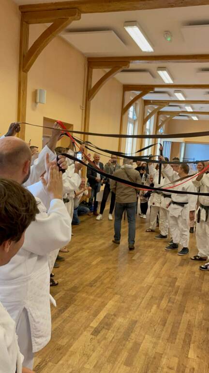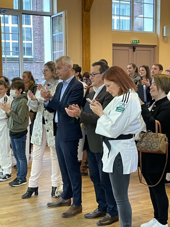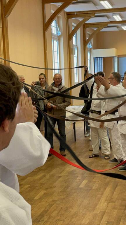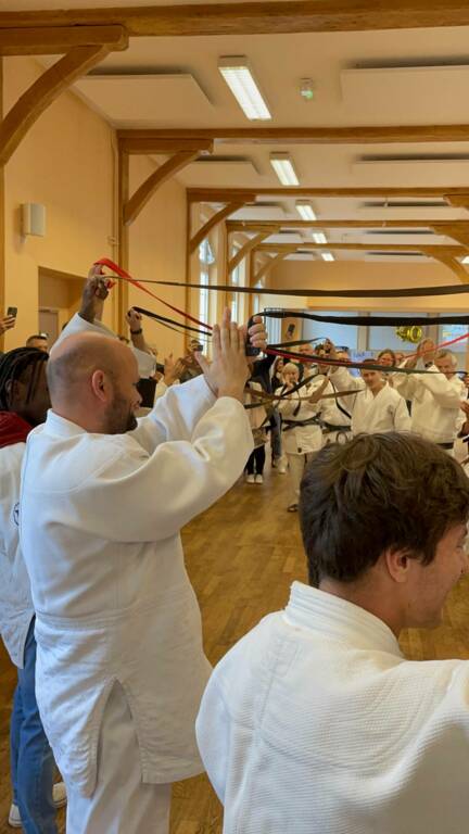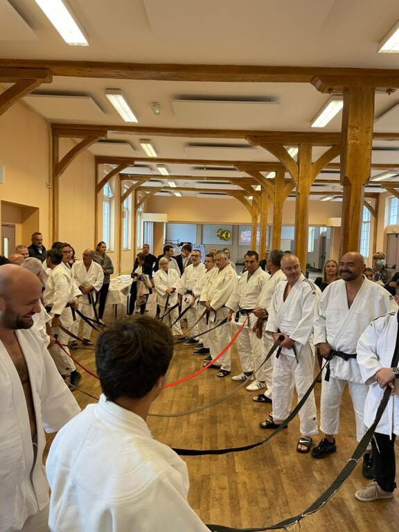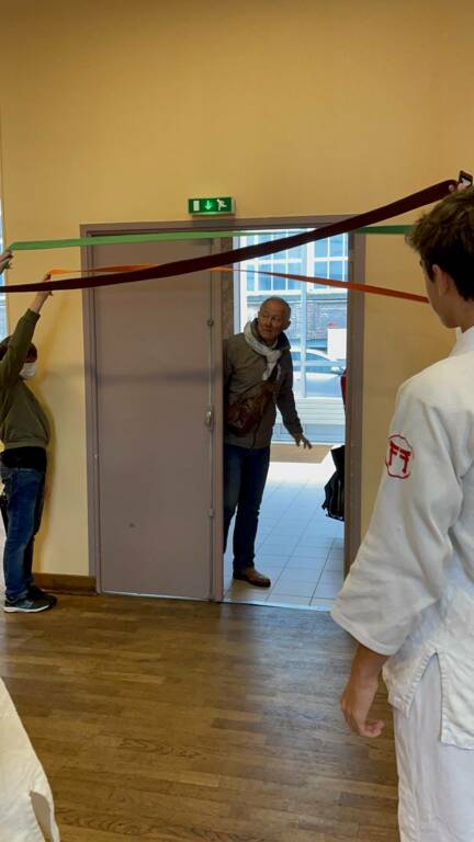 Et quelle ne fût pas sa surprise en descendant du Dojo Shozo Awazu du CAP, après son cours hebdomadaire du samedi matin, d'entrer dans la salle de la Dame Blanche, mise gracieusement à disposition par la ville de Pavilly, et de découvrir cette haie d'honneur de ceintures de judo qui l'attendait.