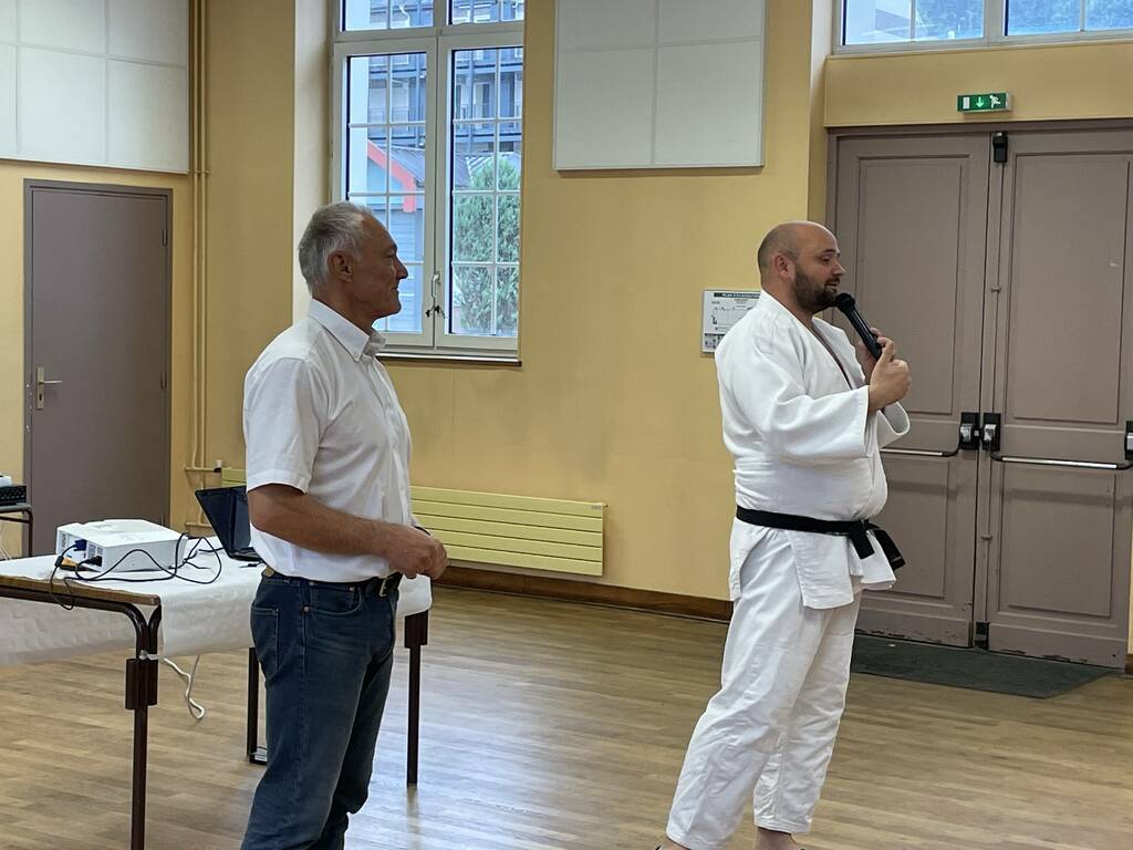 En effet, Virginie et les membres du Comité Directeur du CAP avaient souhaité organiser une petite cérémonie en l'honneur de Jean-Pierre pour fêter ses 40 ans de professorat de judo et également son 7ème dan acquis l'année dernière... ainsi que son Jubilé de Judo (tout cela n'avait pas pu être mis en avant auparavant du fait de la COVID 19).