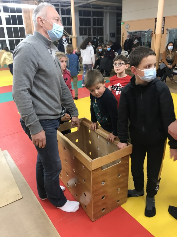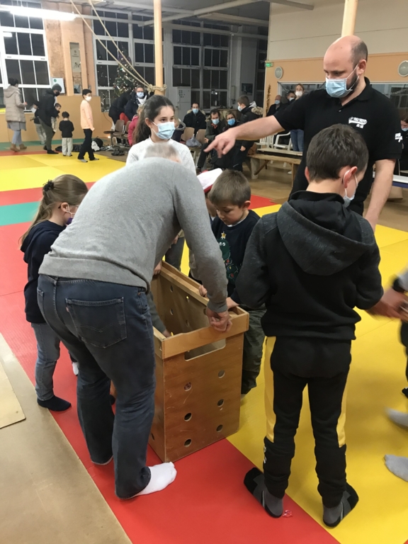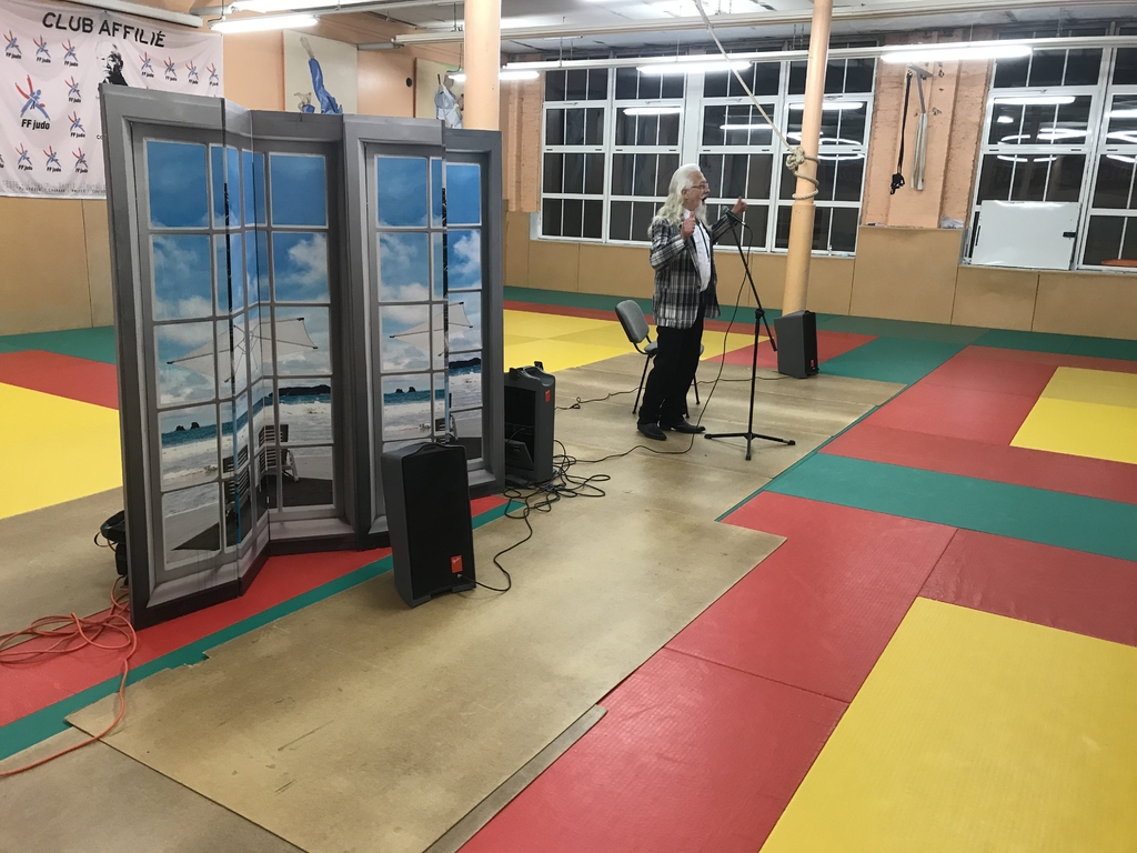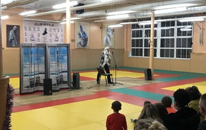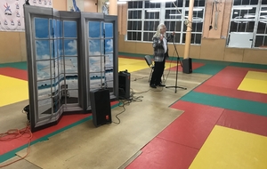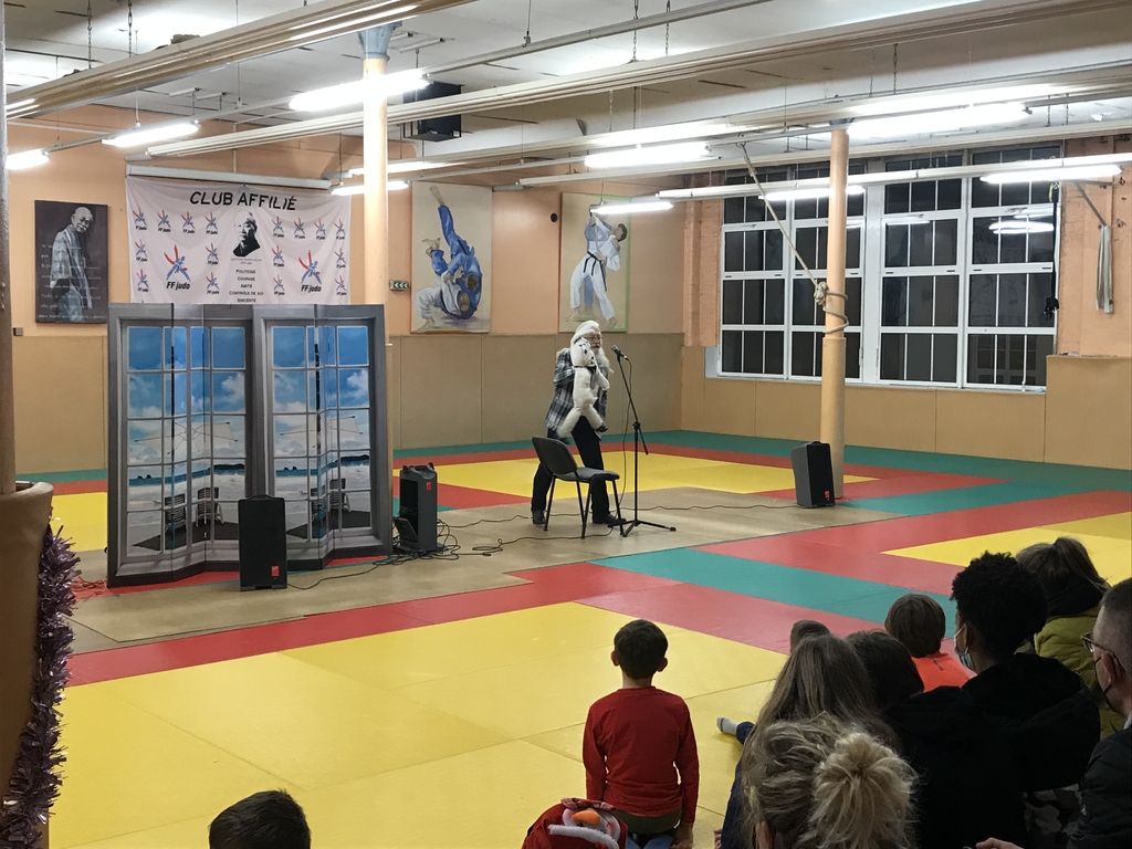 Ce mercredi 15 décembre a eu lieu l’arbre de Noël du CAP. L’organisation a commencé vers 16h30 pour pouvoir mettre en place les chaises, les bancs… Le ventriloque est arrivé au dojo vers 17h et a ainsi installé sa scène équipée de ses enceintes et de ses différents ustensiles.